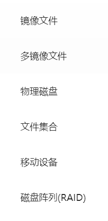 以弘连火眼证据分析软件为例,选取检材的时候会看见如下选项: