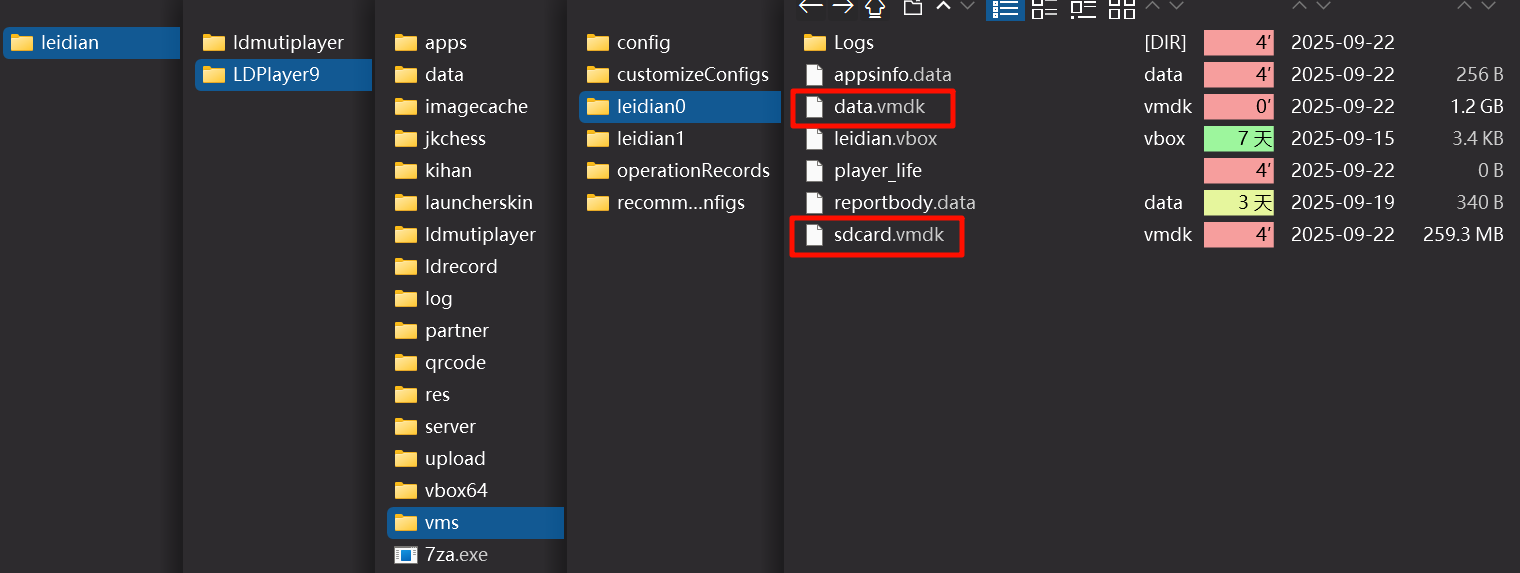 .ldbk文件是一个ZIP压缩包,修改扩展名为.zip后解压,就能得到data.vmdksdcard.vmdk两个虚拟磁盘文件