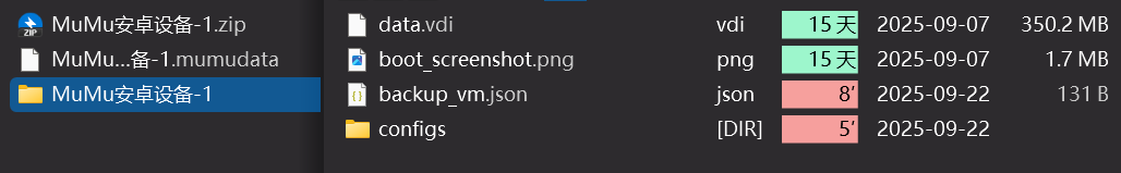 .mumudata也是一个ZIP压缩包,按同样方法改名解压后可获取.vdi磁盘文件: