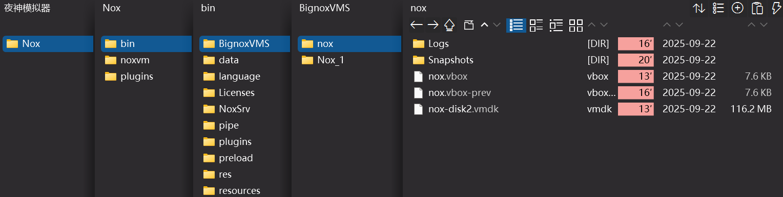 磁盘位置和雷电模拟器如出一辙,位于安装目录的vms文件夹下,不多赘述