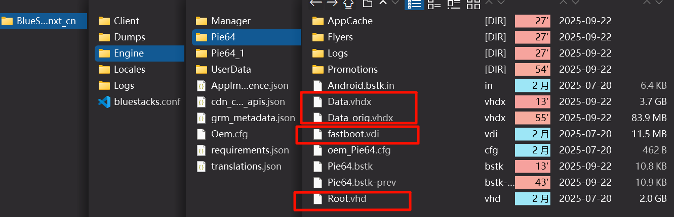 同时,他的磁盘似乎是分开存储的,fastboot使用的是.vdi,而数据和root使用.vhd.vhdx