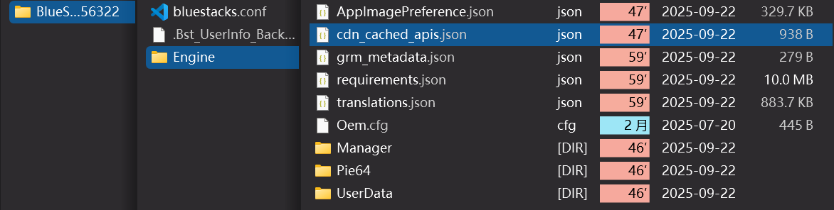 Engine文件夹下也放置了一些json/cfg格式配置文件,以及Manager和UserData文件夹,所有虚拟机共用