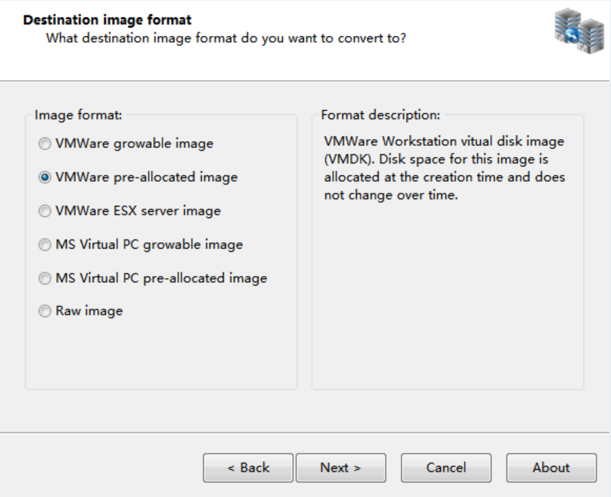这个软件功能繁多,还能做到物理磁盘到虚拟磁盘的迁移(P2V),由于主题不在此,就不多赘述