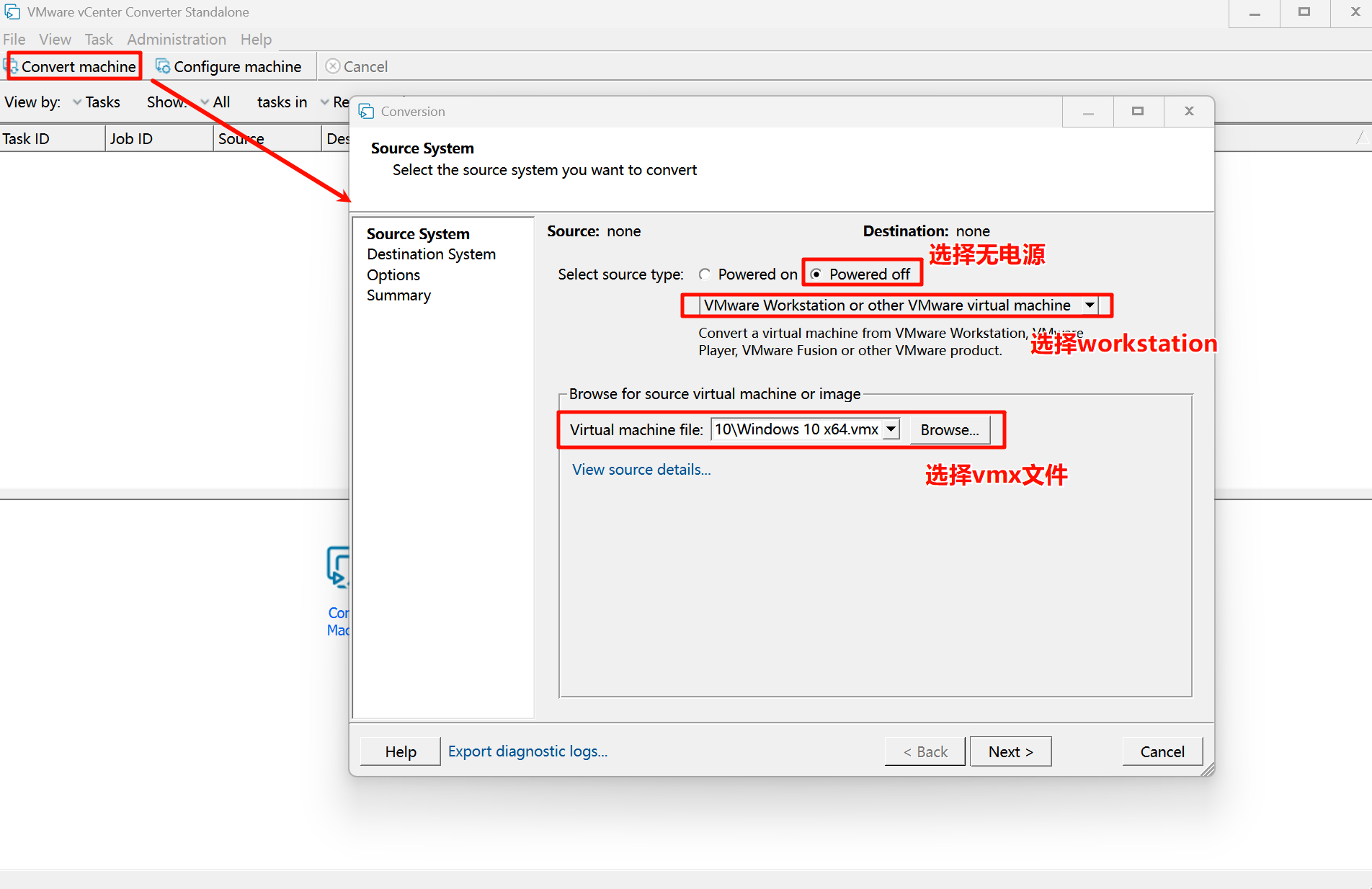需要注意的是VMware分片vmdk需要用描述文件.vmdk,单独s001.vmdk这样的文件不能直接转换