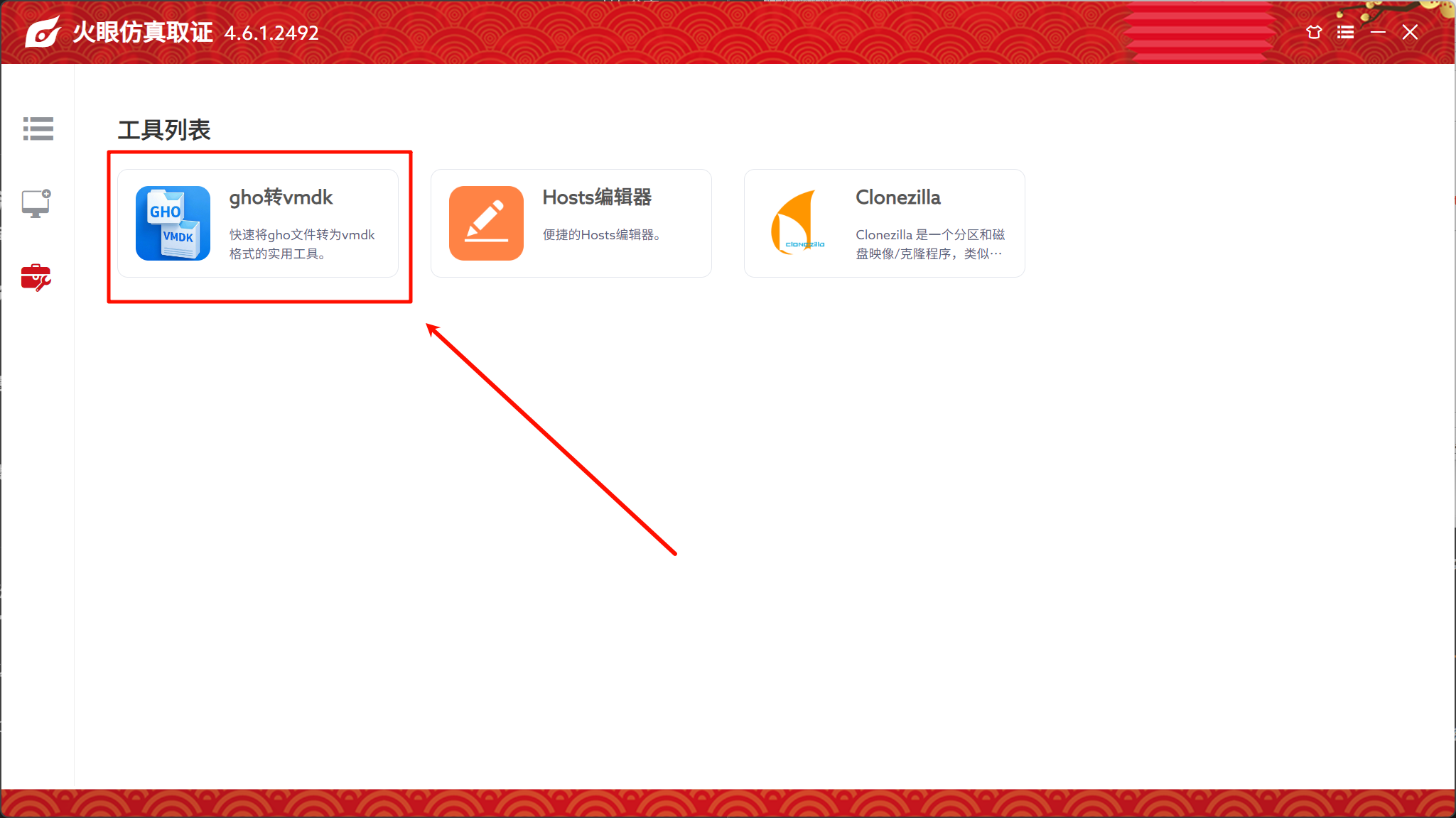 以及使用一些软件,比如火眼仿真提供的gho转vmdk: