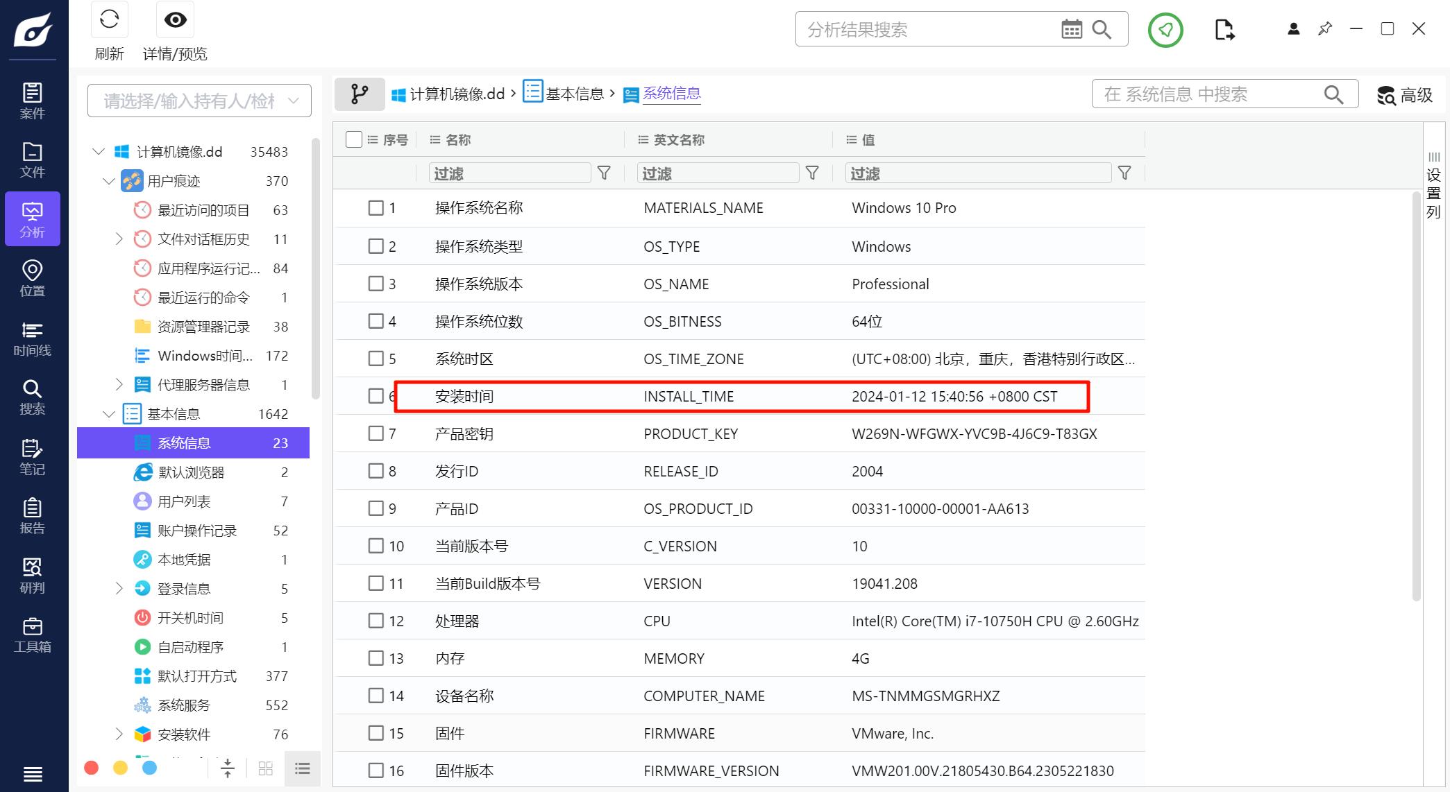 导入火眼分析的时候发现分区7被加密了,先不管它,看看系统信息: