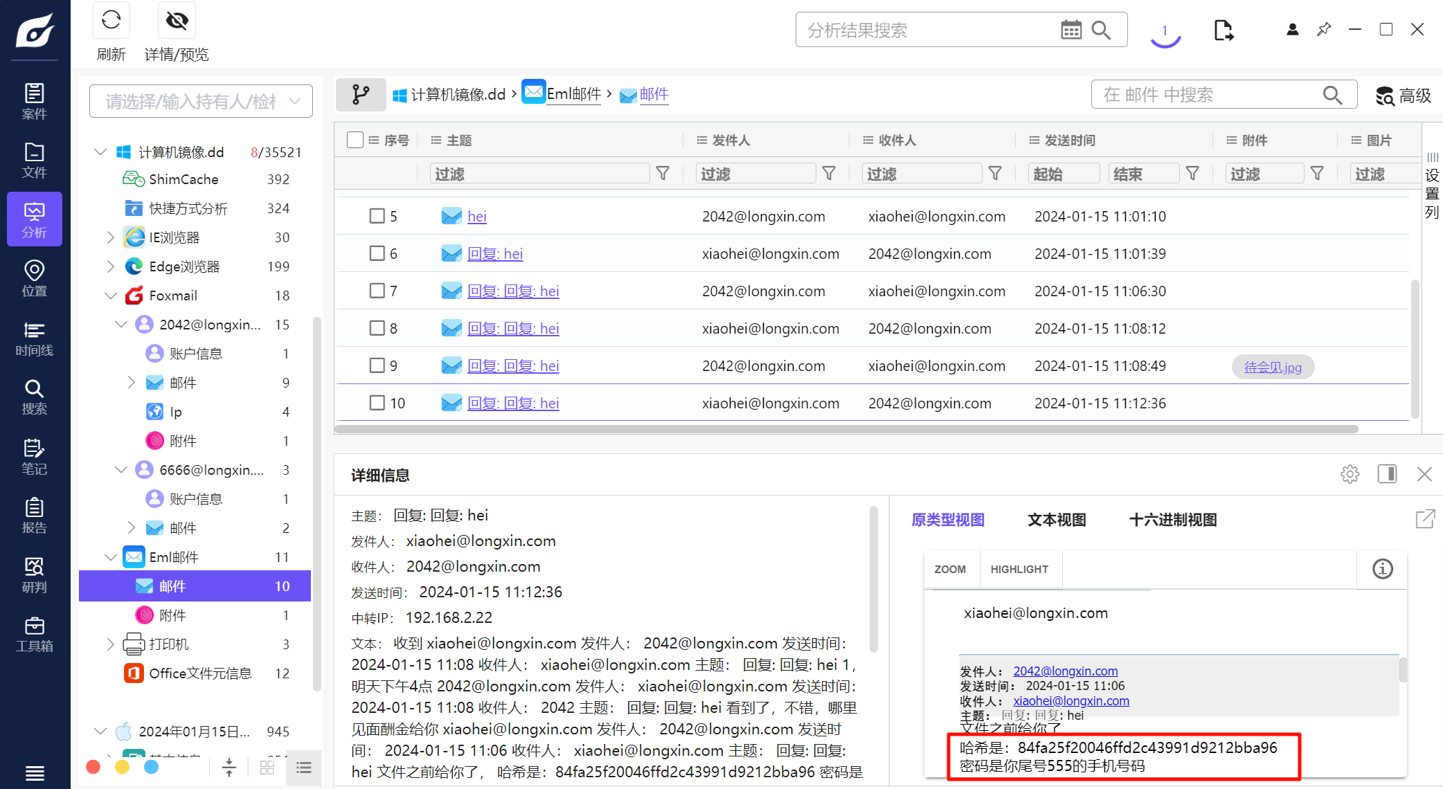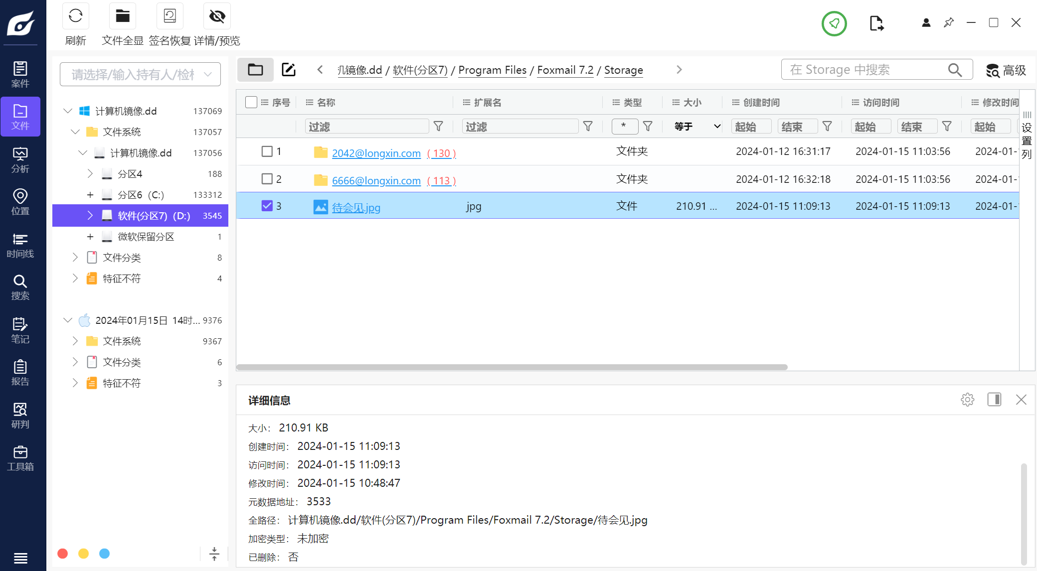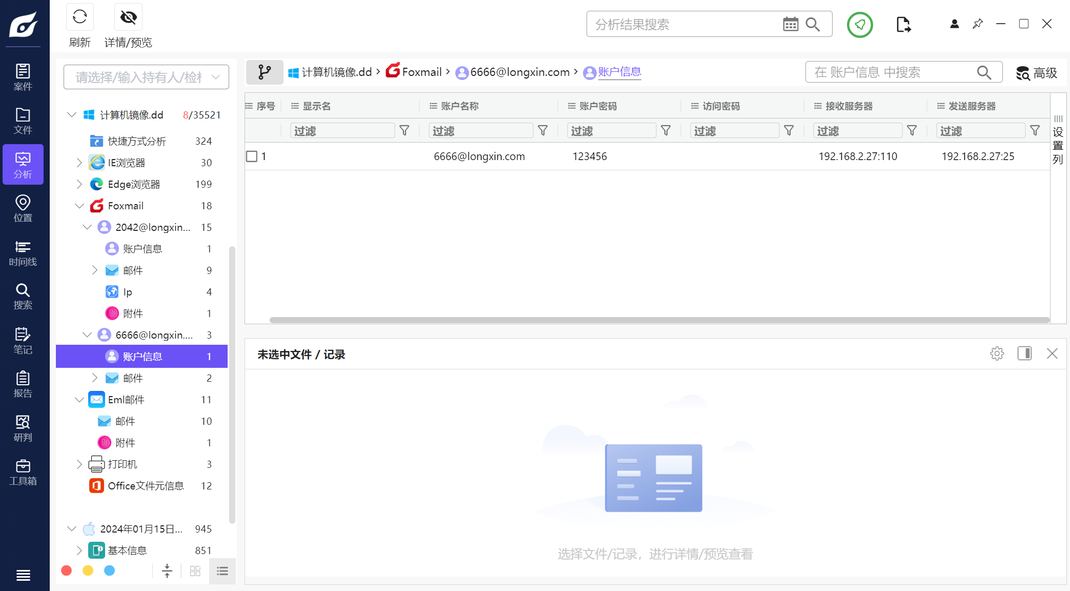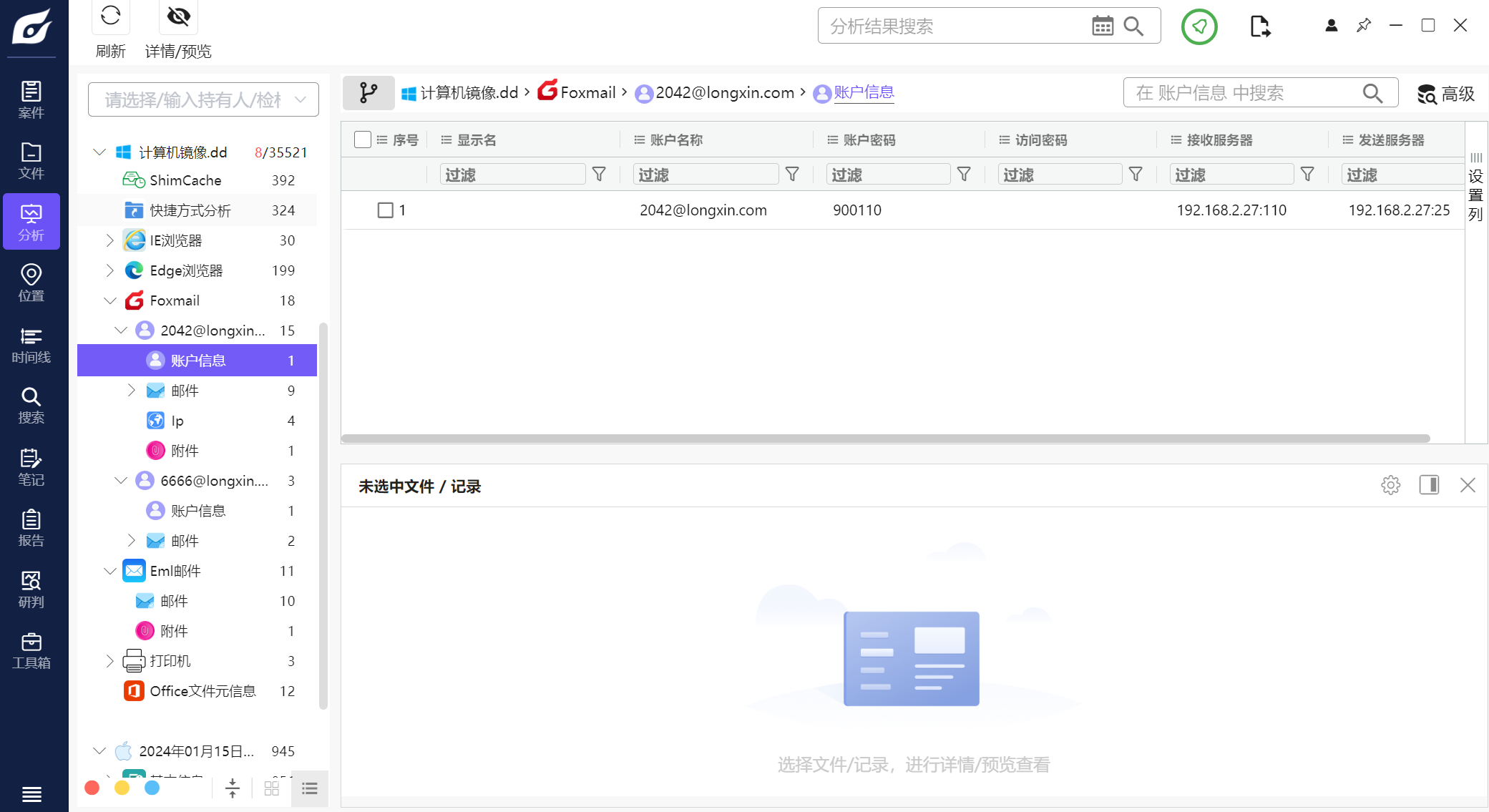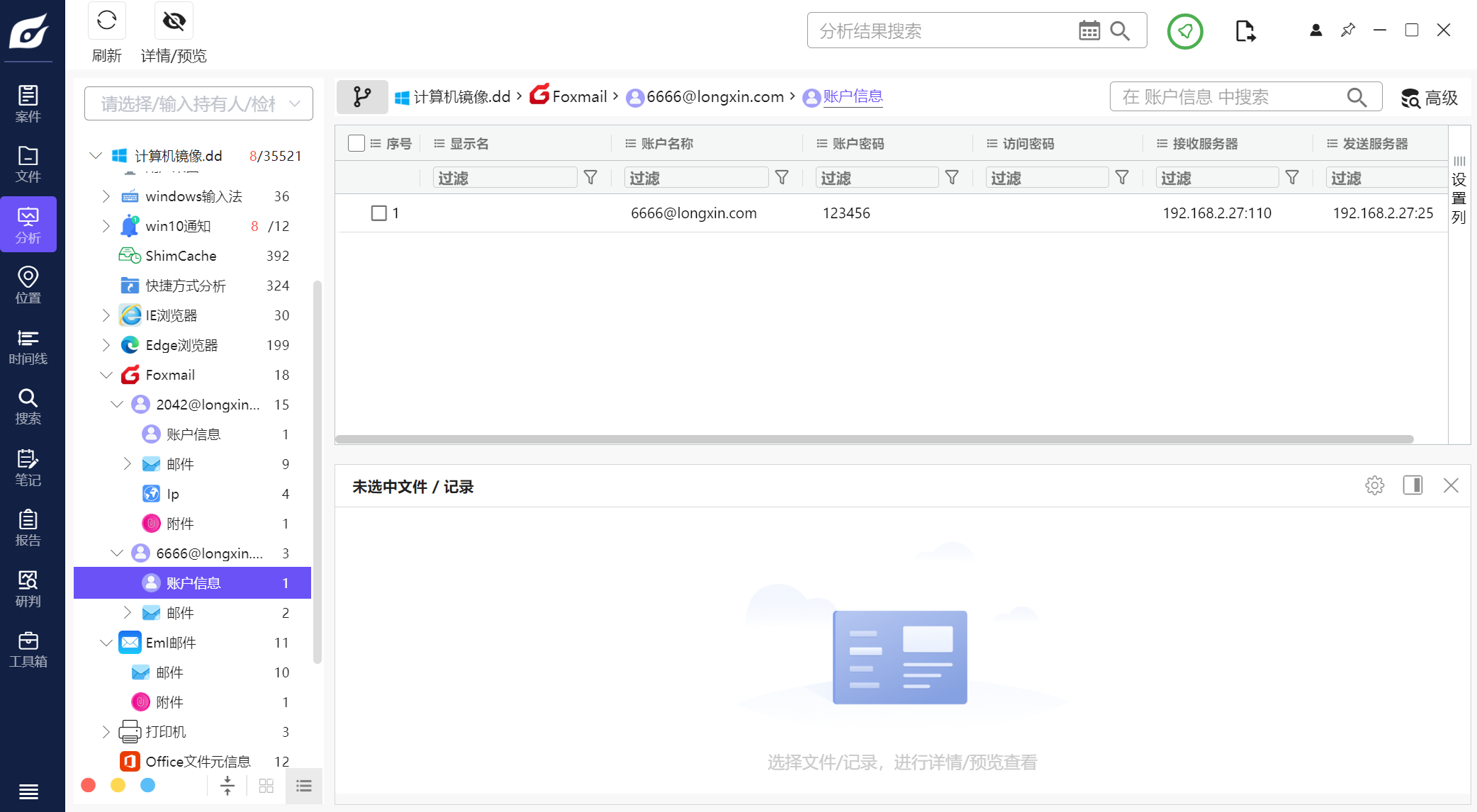 重新分析后果然多了一些东西,其中最为重要的是两个邮件项:Foxmail和Eml邮件
