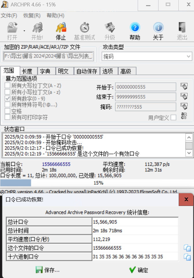 使用ARCPHR掩码爆破一下,还是挺快的: