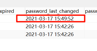 我们在名为mysql的数据库里面找到user表,就能看见每个用户修改密码的信息,第一行是root的: