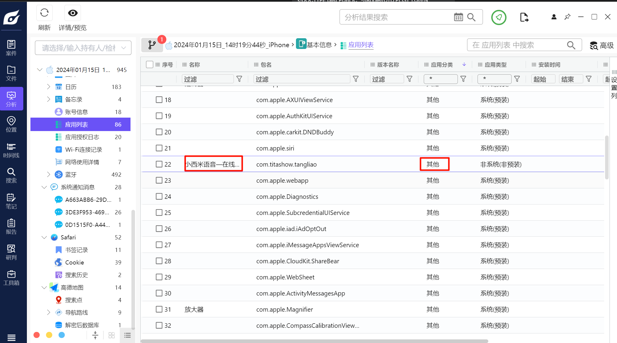 这里还漏了一个,之后题目还有提到小西米语音,这个软件没有被标记为即时通信: