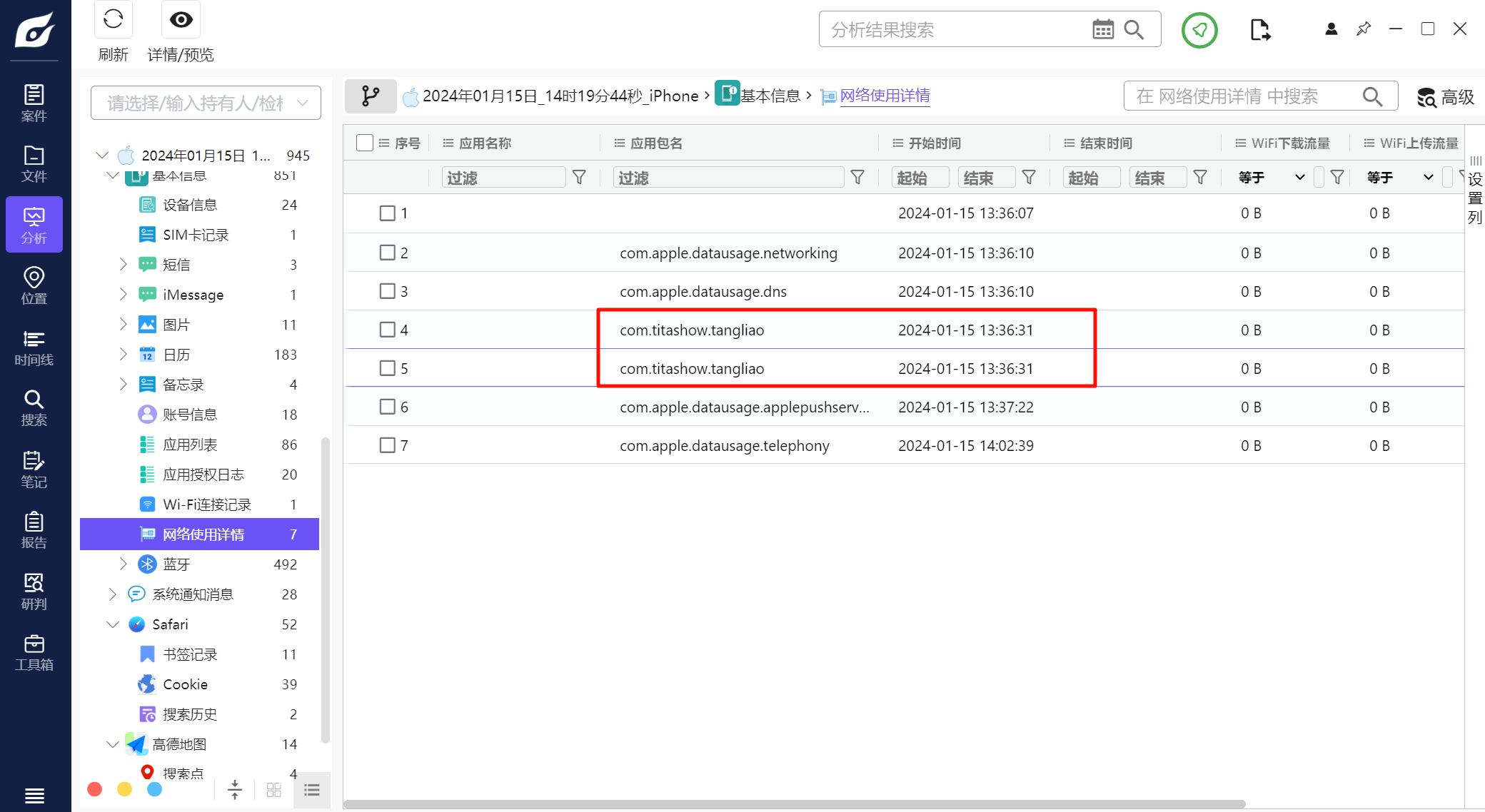 查看网络连接情况,之前我们知道了小西米语音的包名是com.titashow.tangliao:
