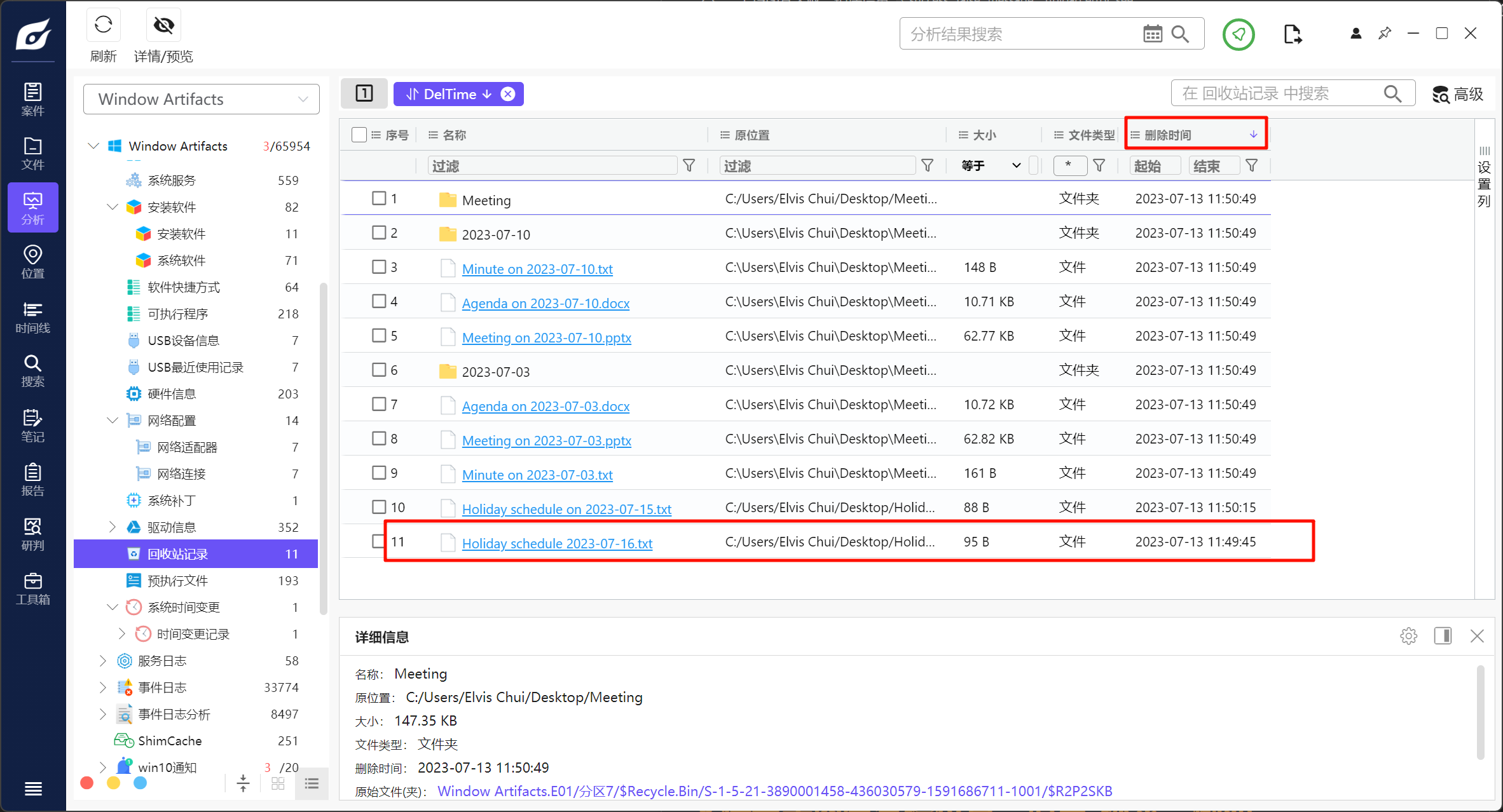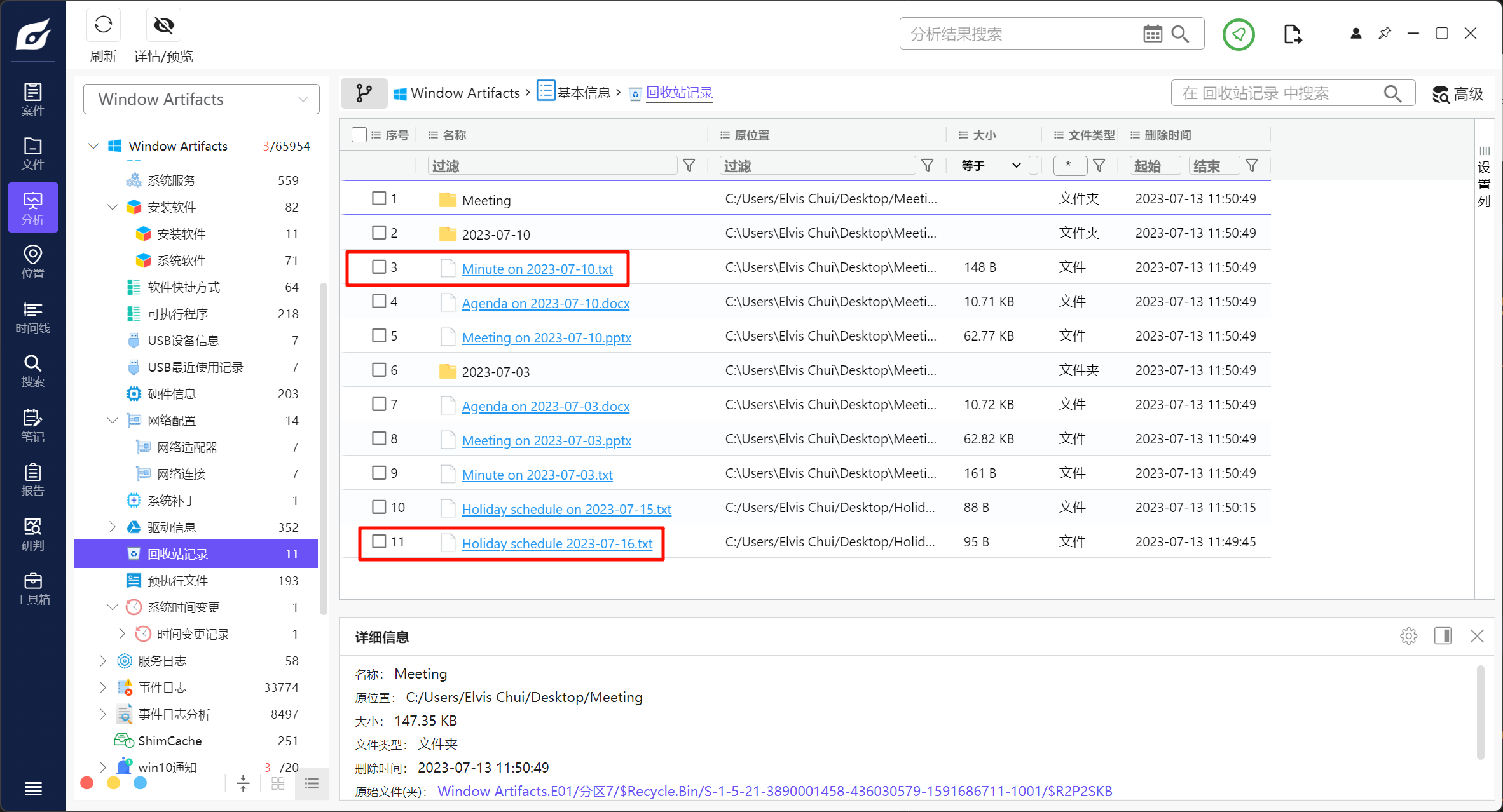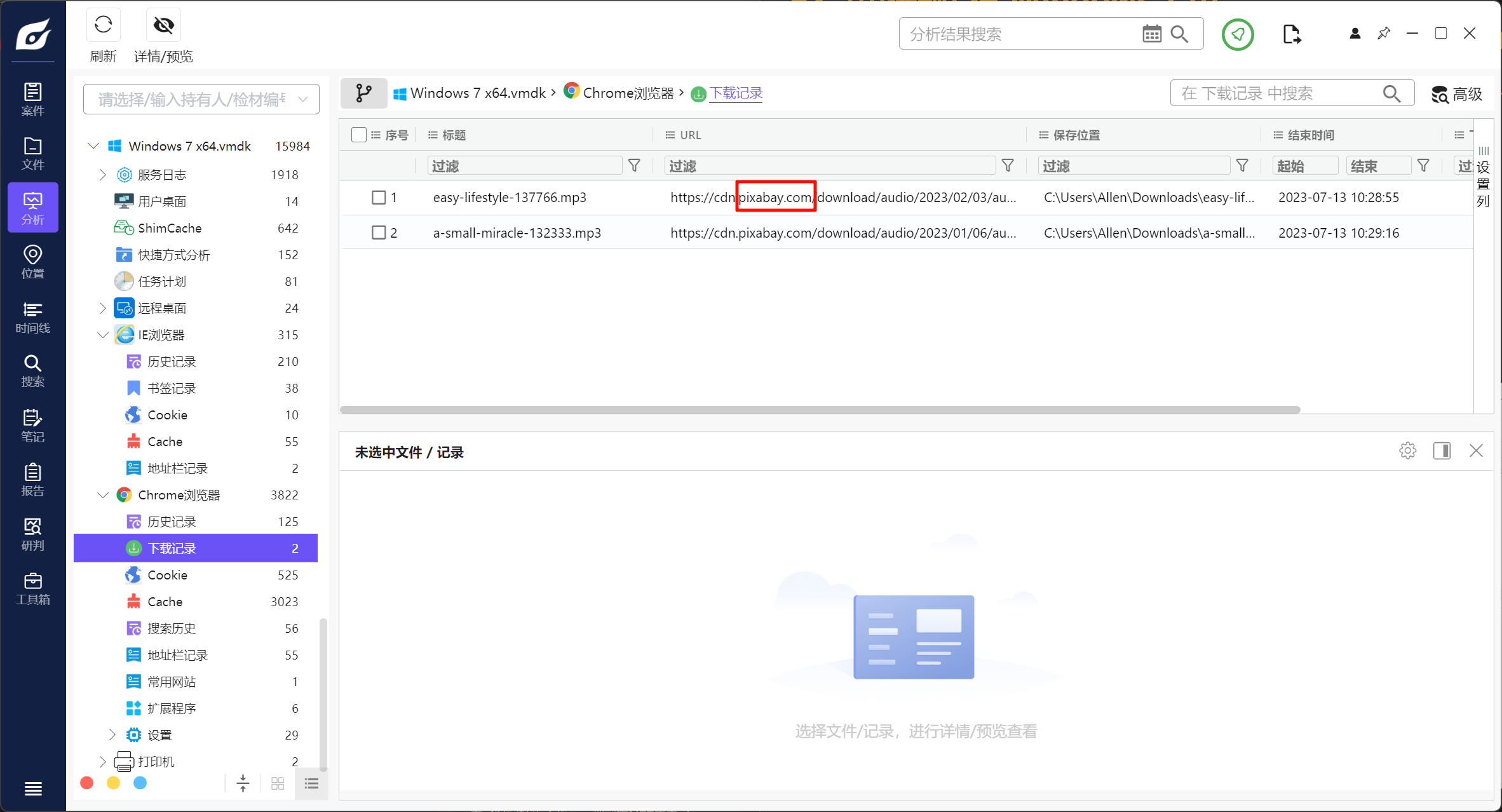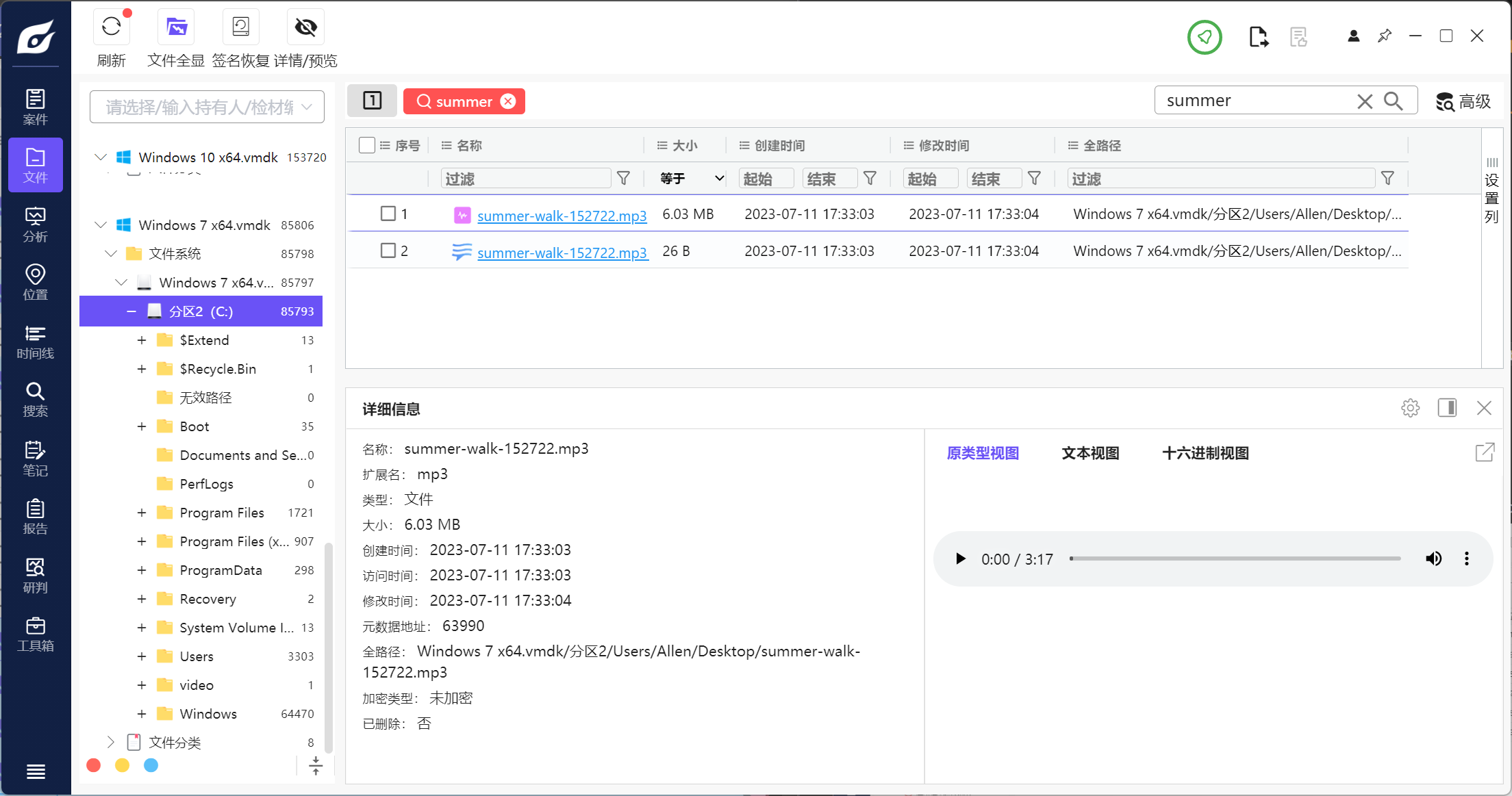 火眼耗时任务里面有这一项,执行之后能直接查看所有的记录,其中就能找到miracle.mp3相关记录: