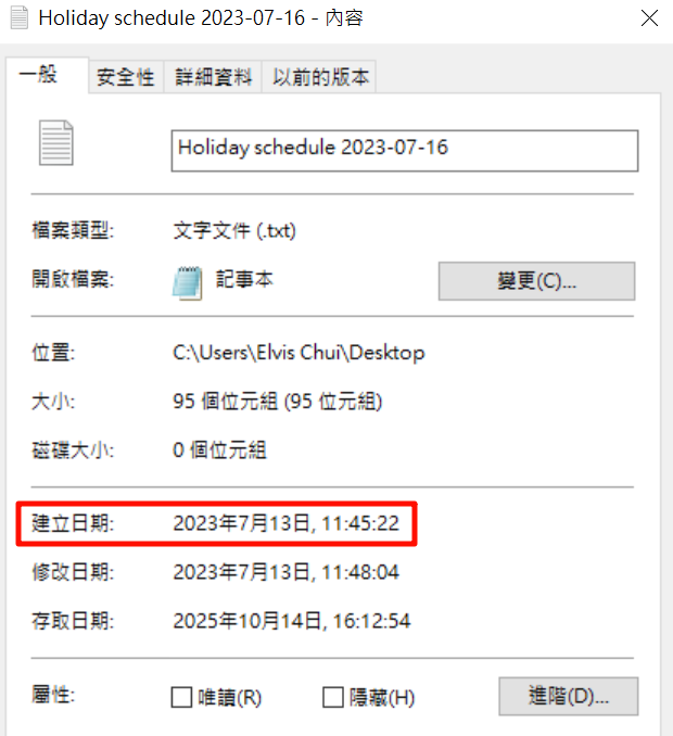 可以看到修改时间和创建时间是不一样的,说明是被修改了