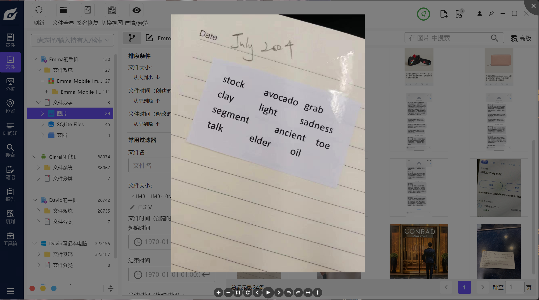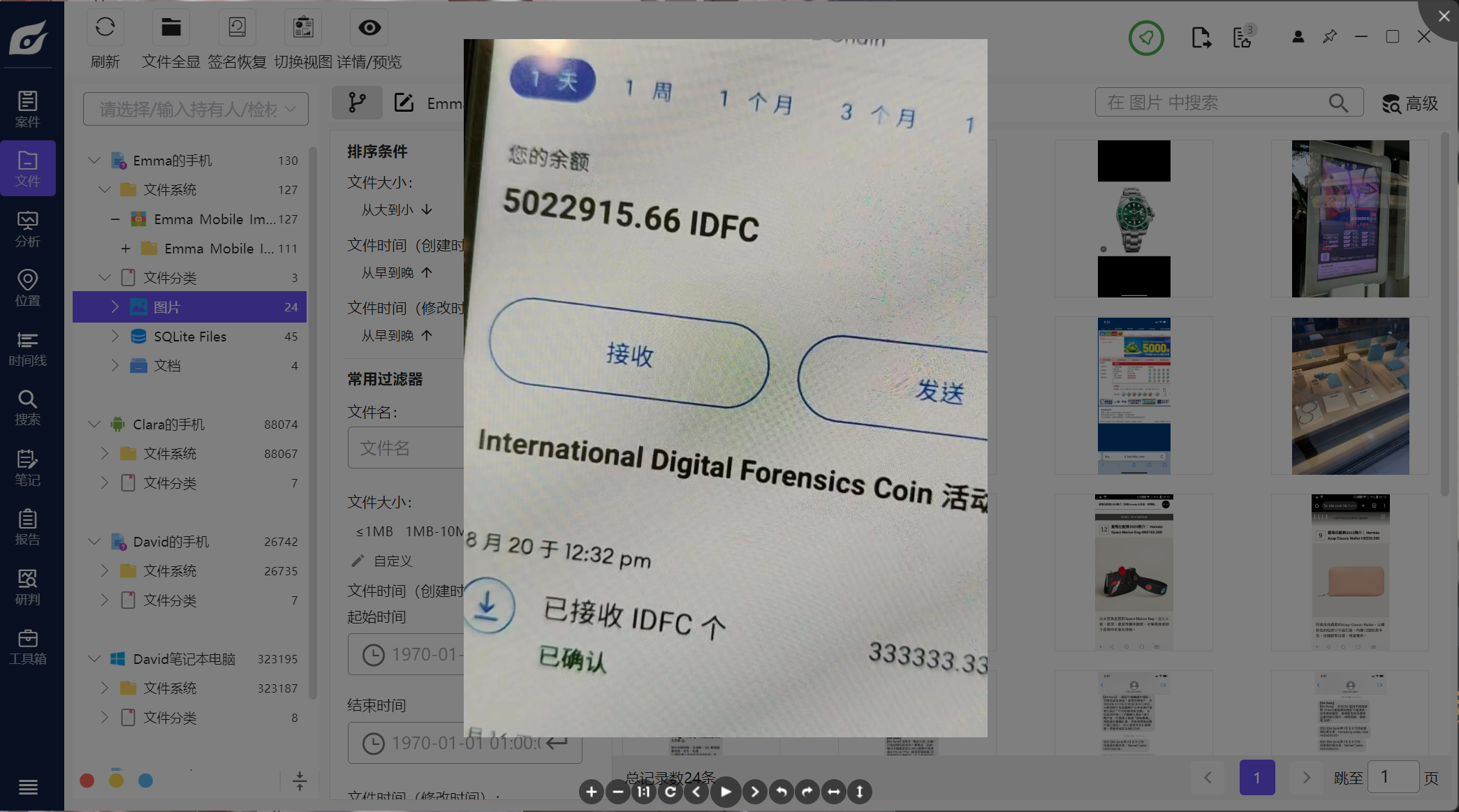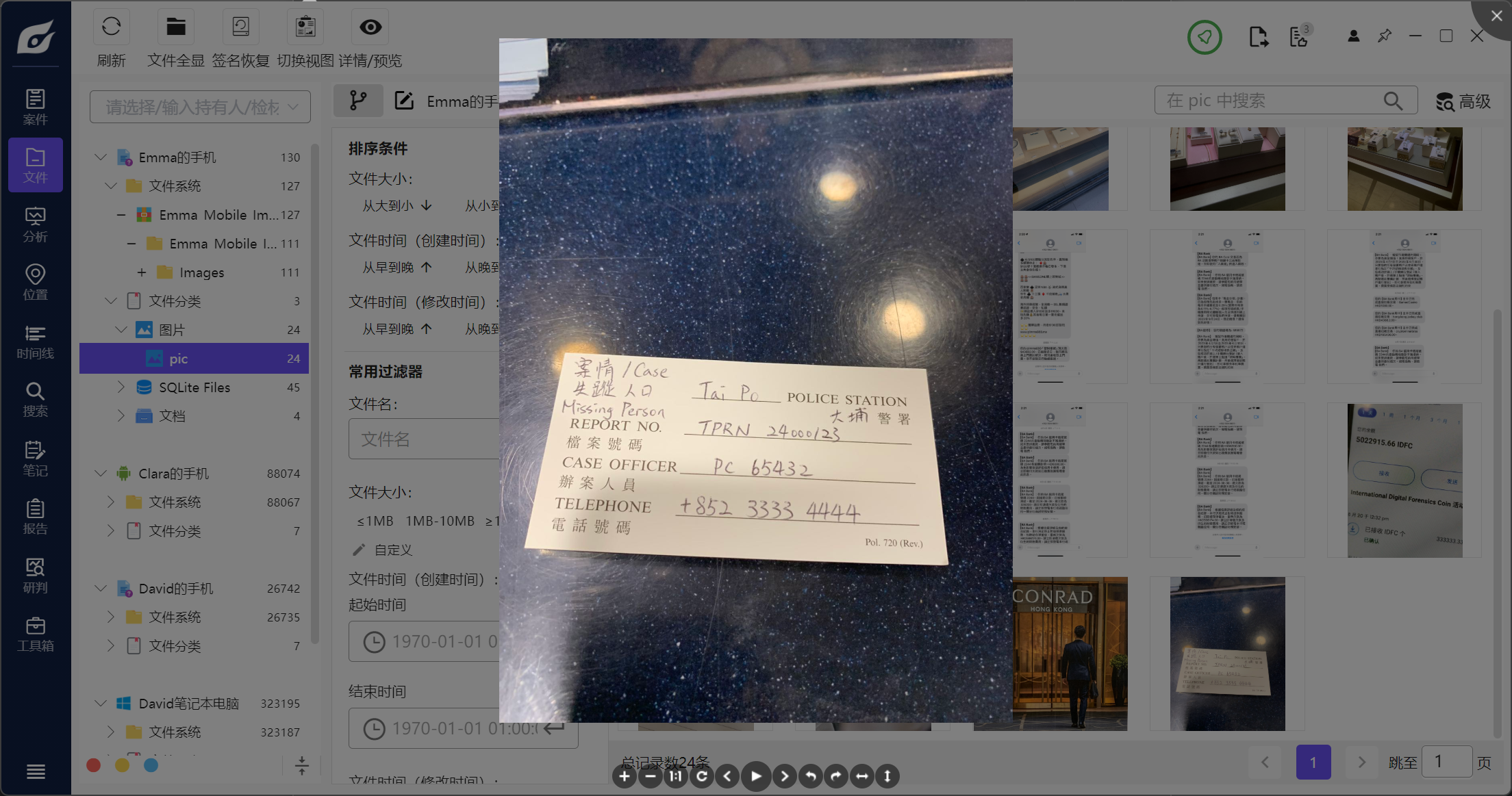 于2024月8月某日,警方接获一名本地女子Emma报案·指她的姊姊CIara失联多天,希望报告一宗失踪人囗的案件。现在你被委派处理这宗案件。于处理该案件期间,你在Emma的同意下提取了她手机的资料,并且协助警方对CIara及其丈夫David的电子装备进行取证工作。请分析以下的资料,还原事件经过