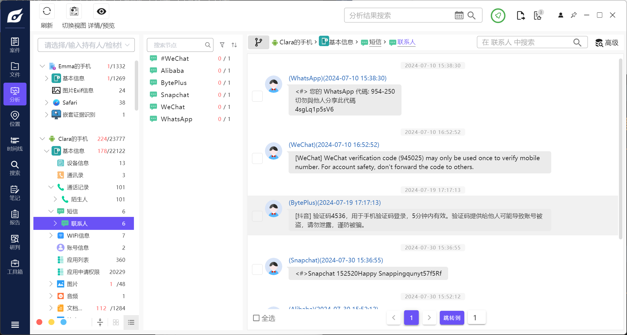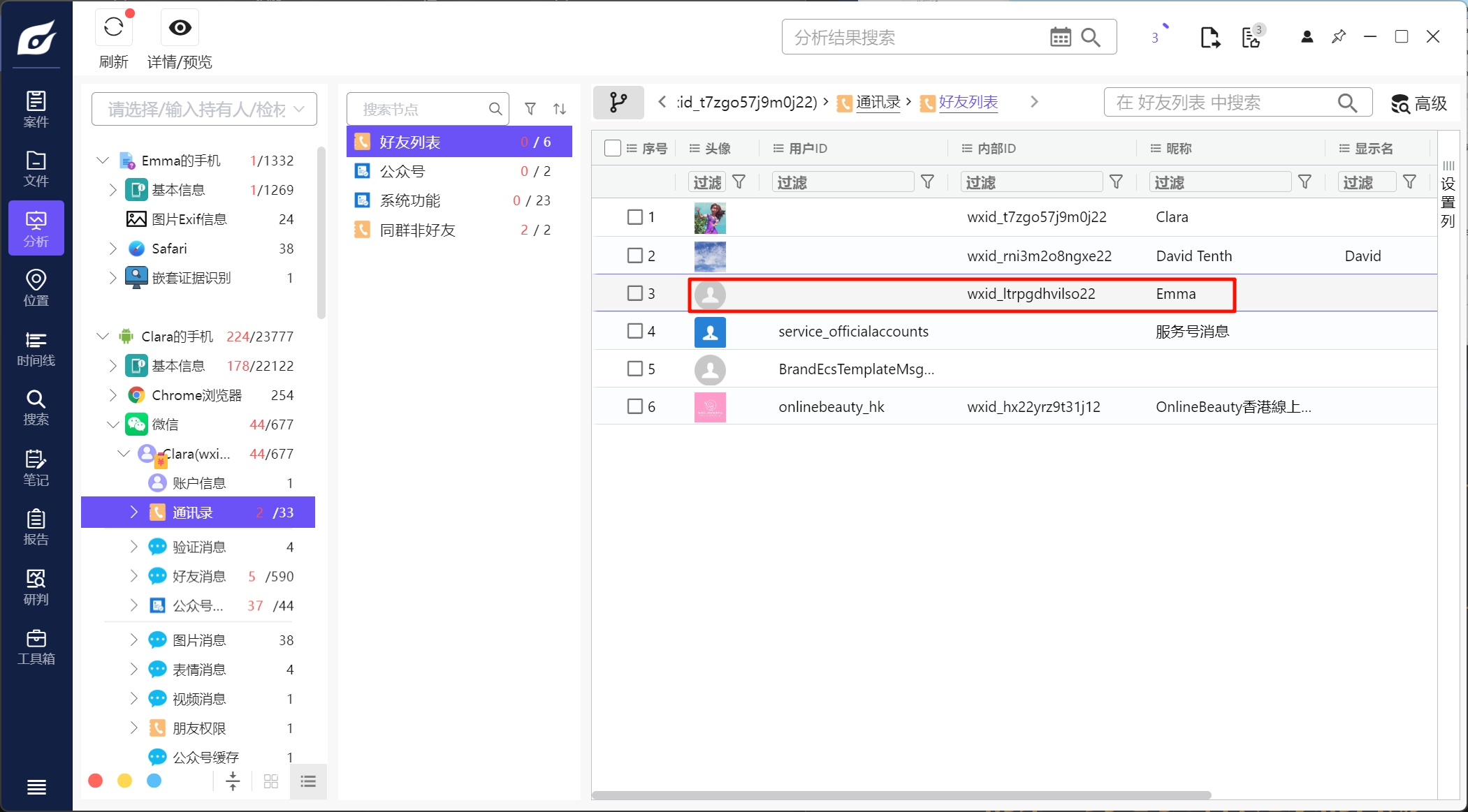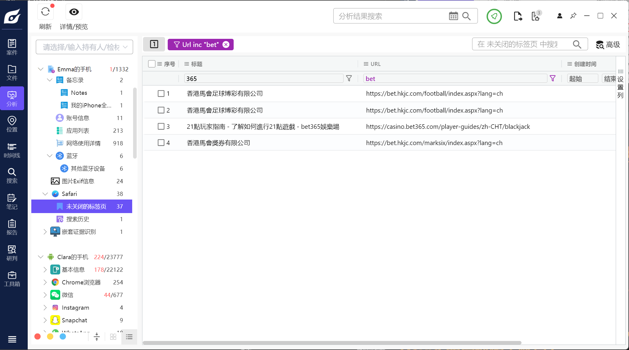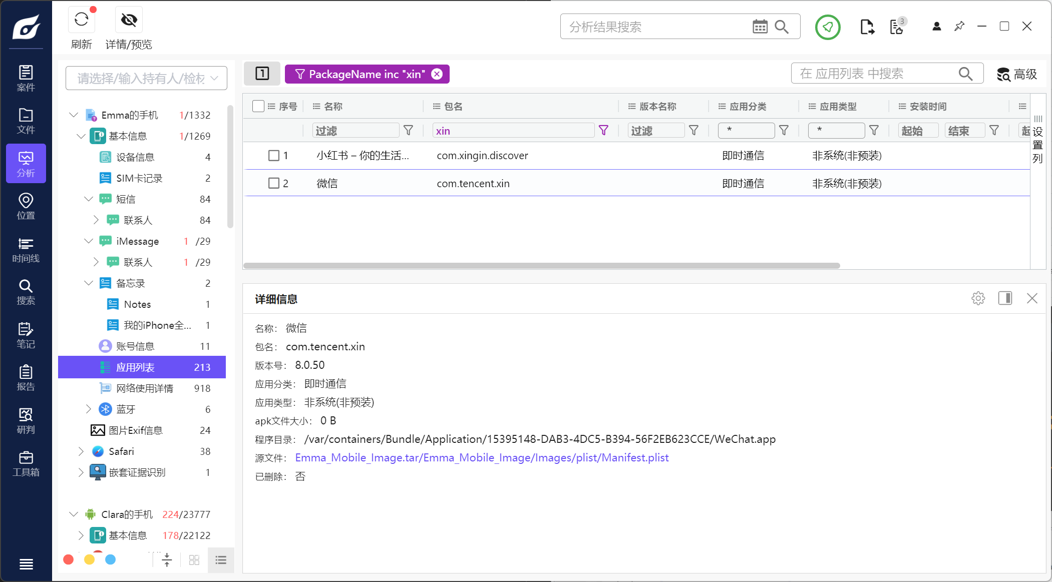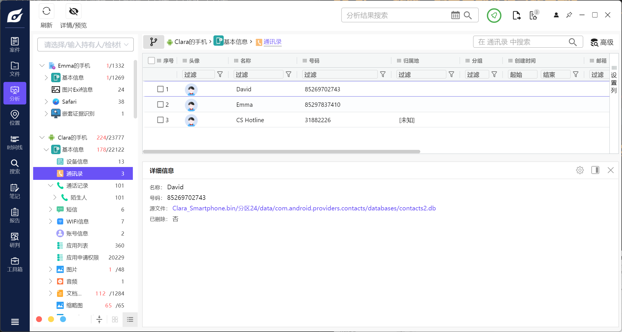 不过好在火眼能对其中的数据库什么的进行解析,虽然没有自动取证,但是也能看见具体的东西