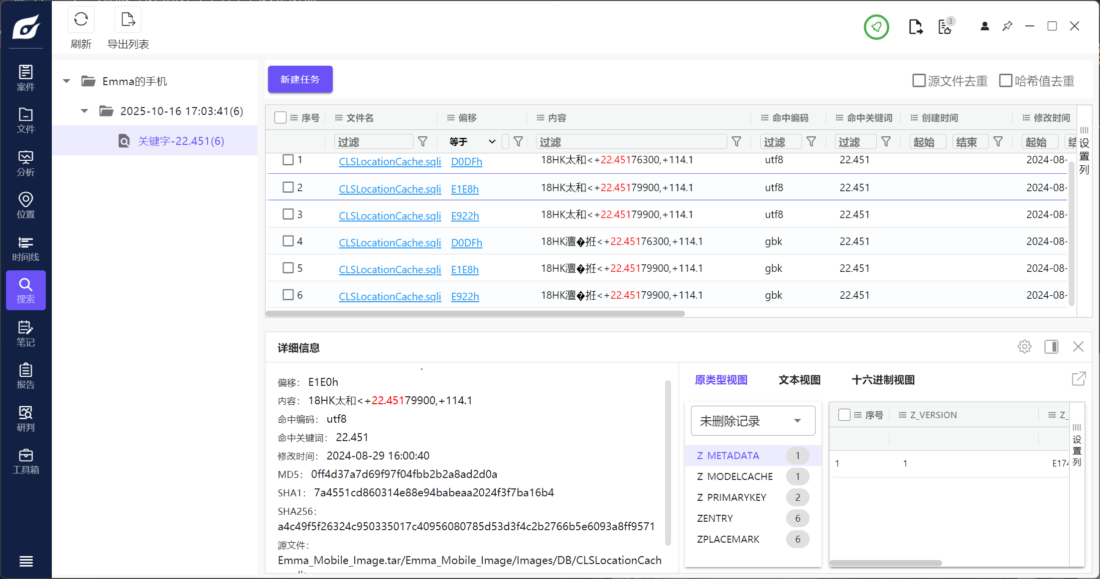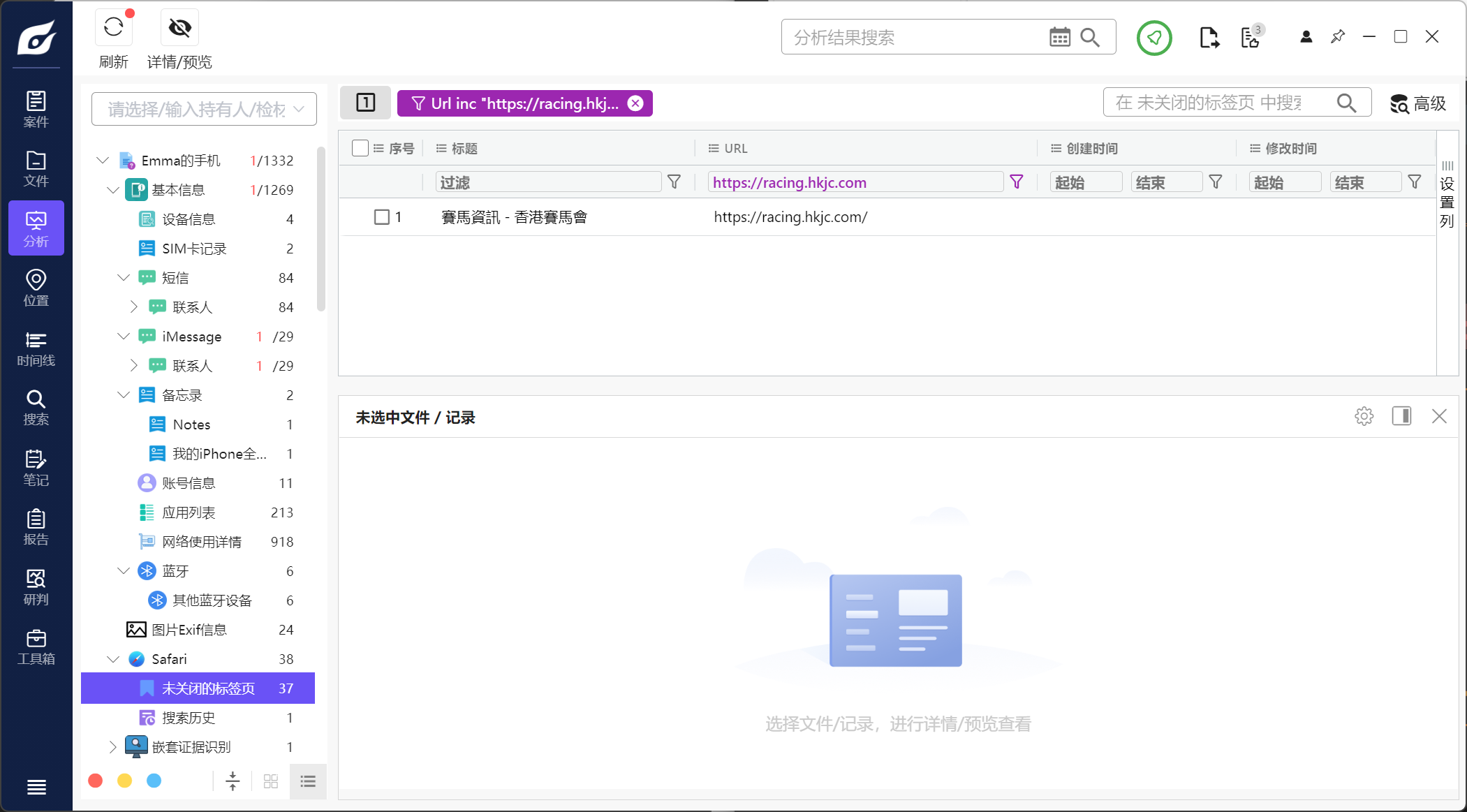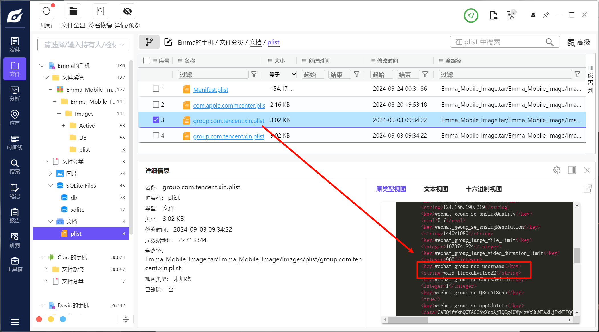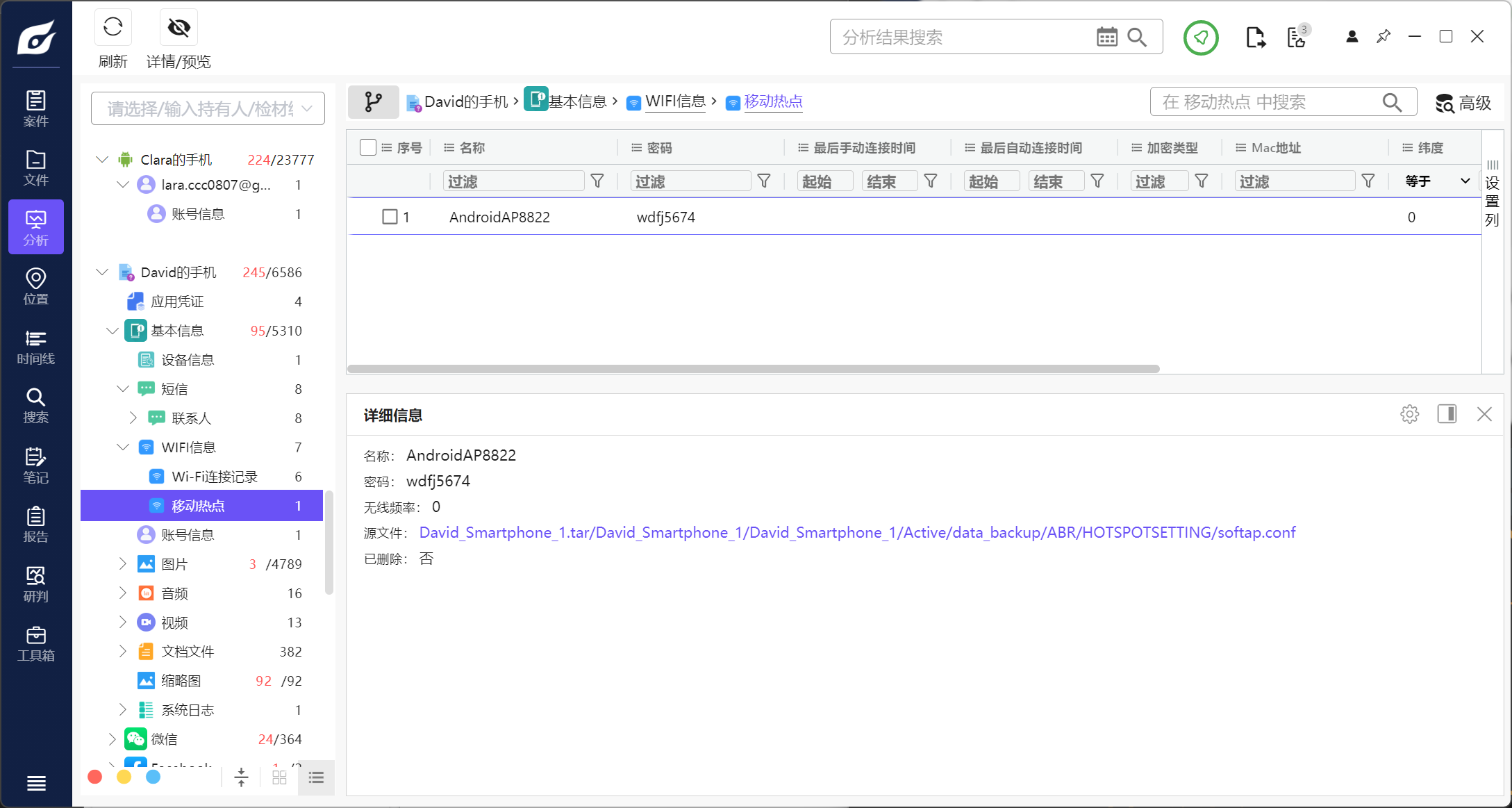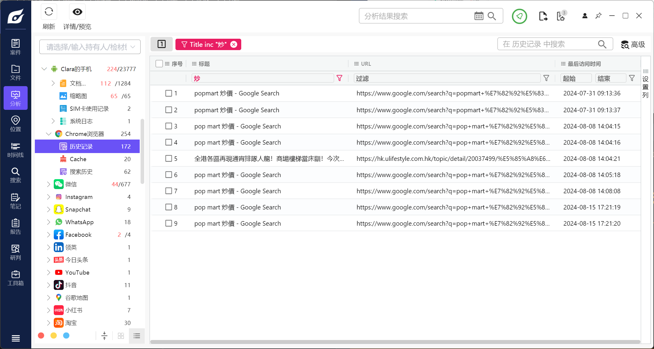 不过好在火眼能对其中的数据库什么的进行解析,虽然没有自动取证,但是也能看见具体的东西