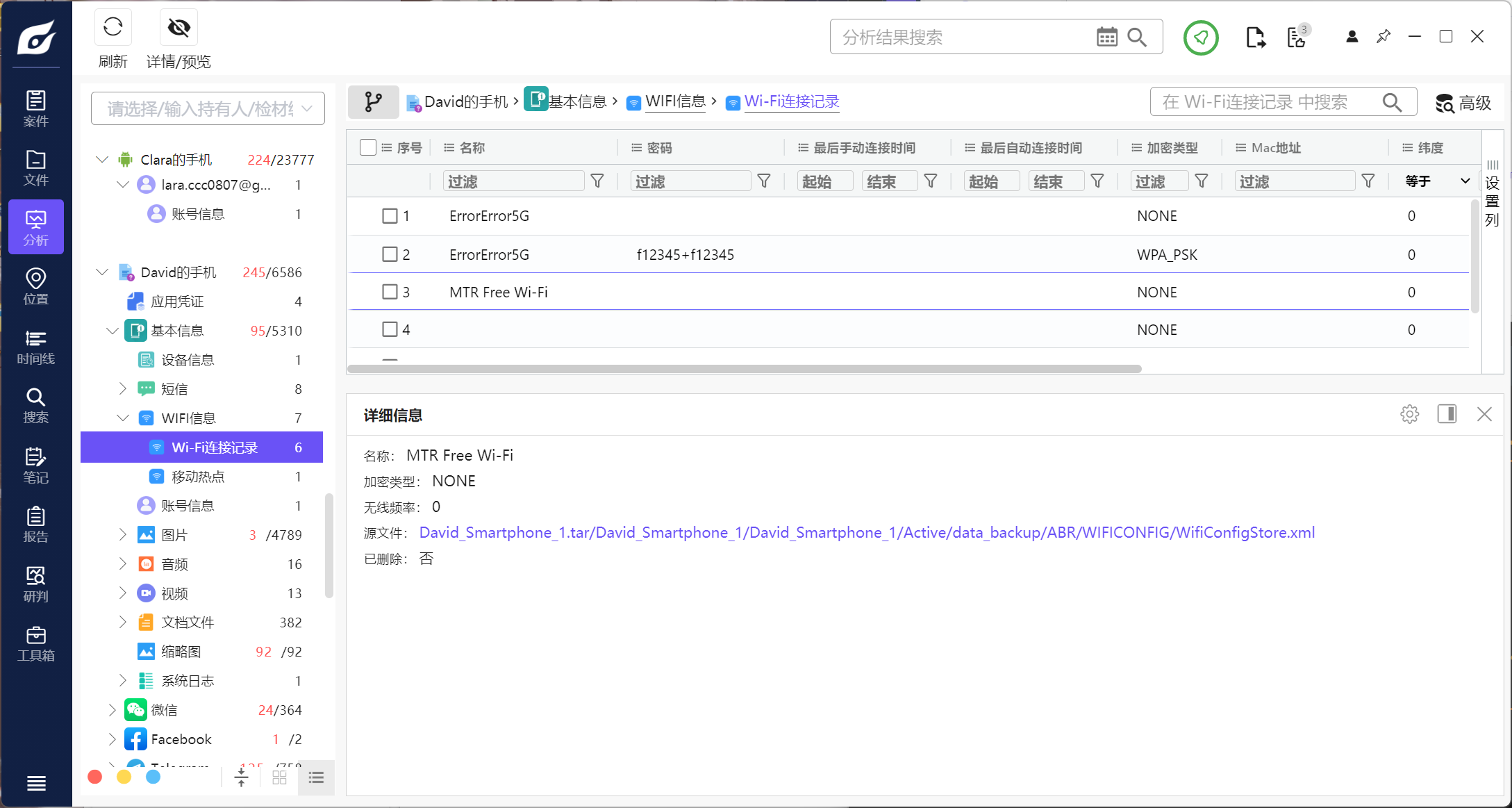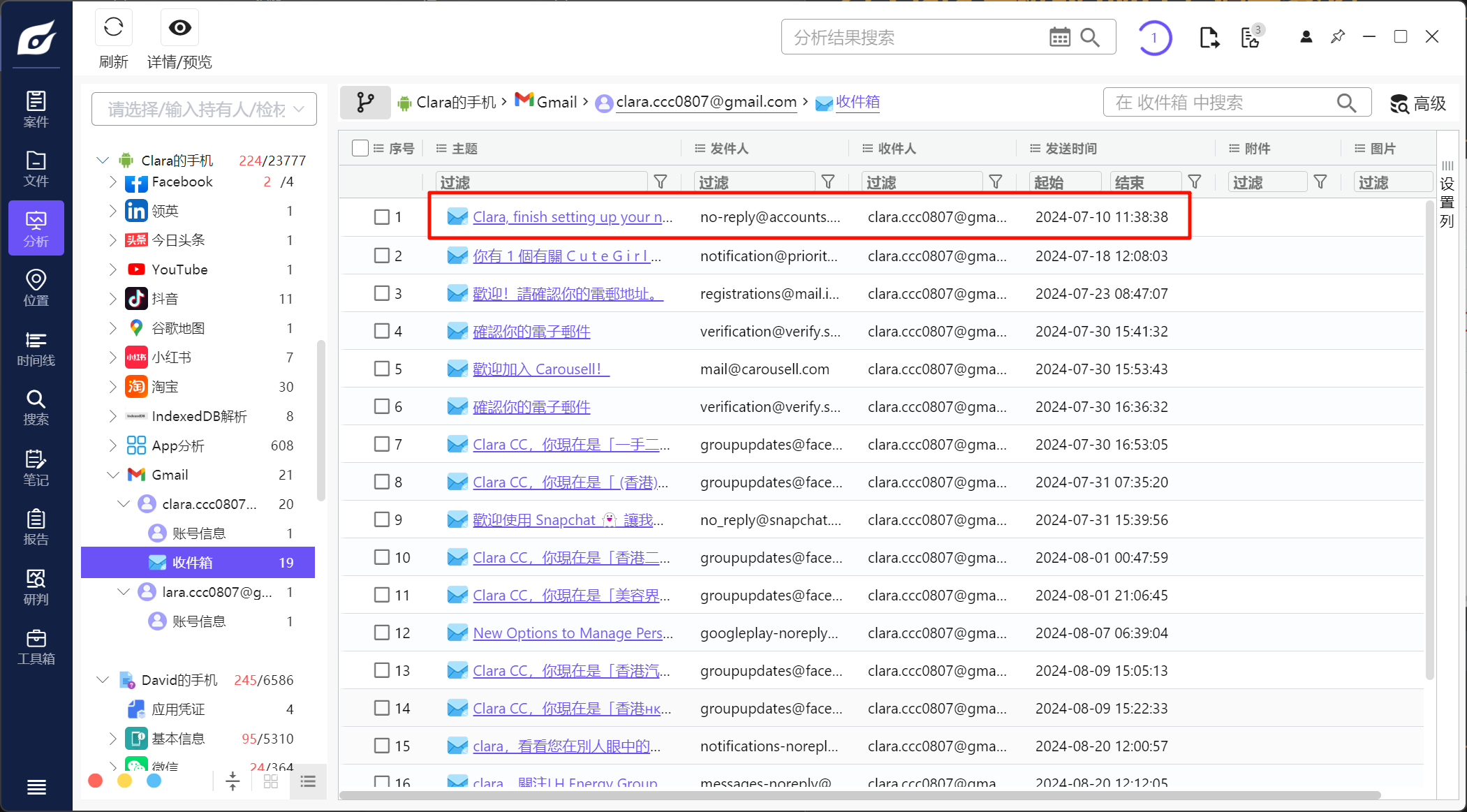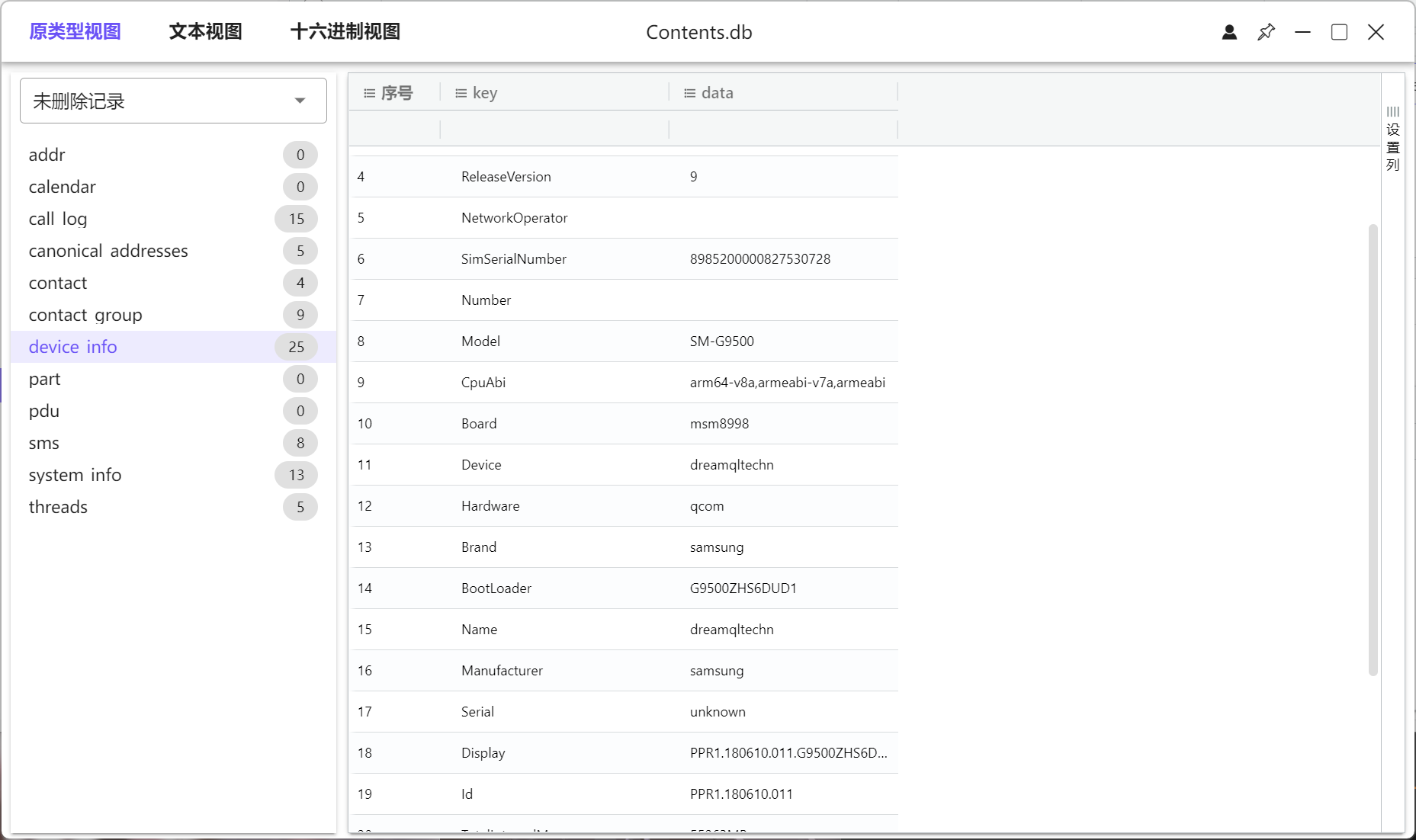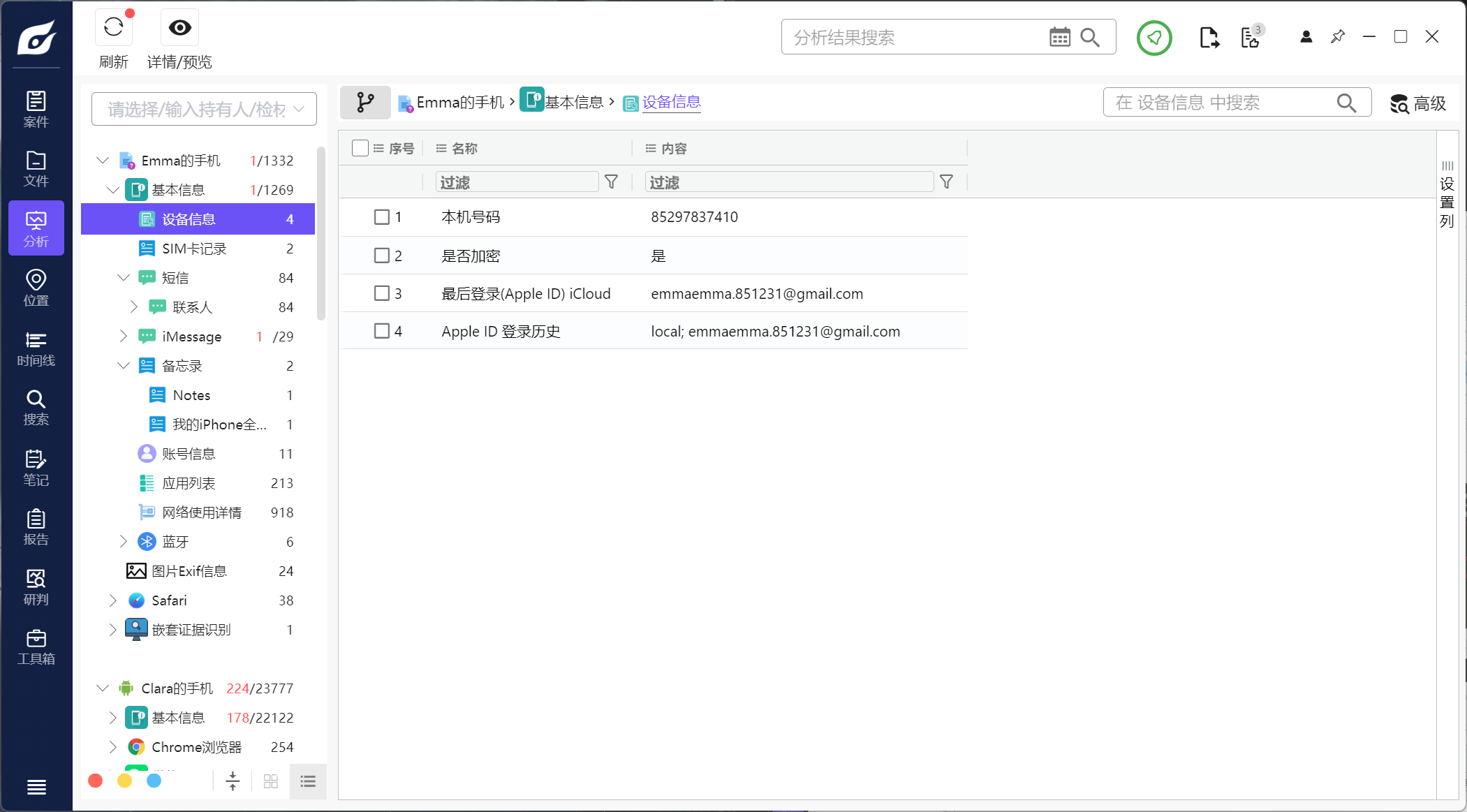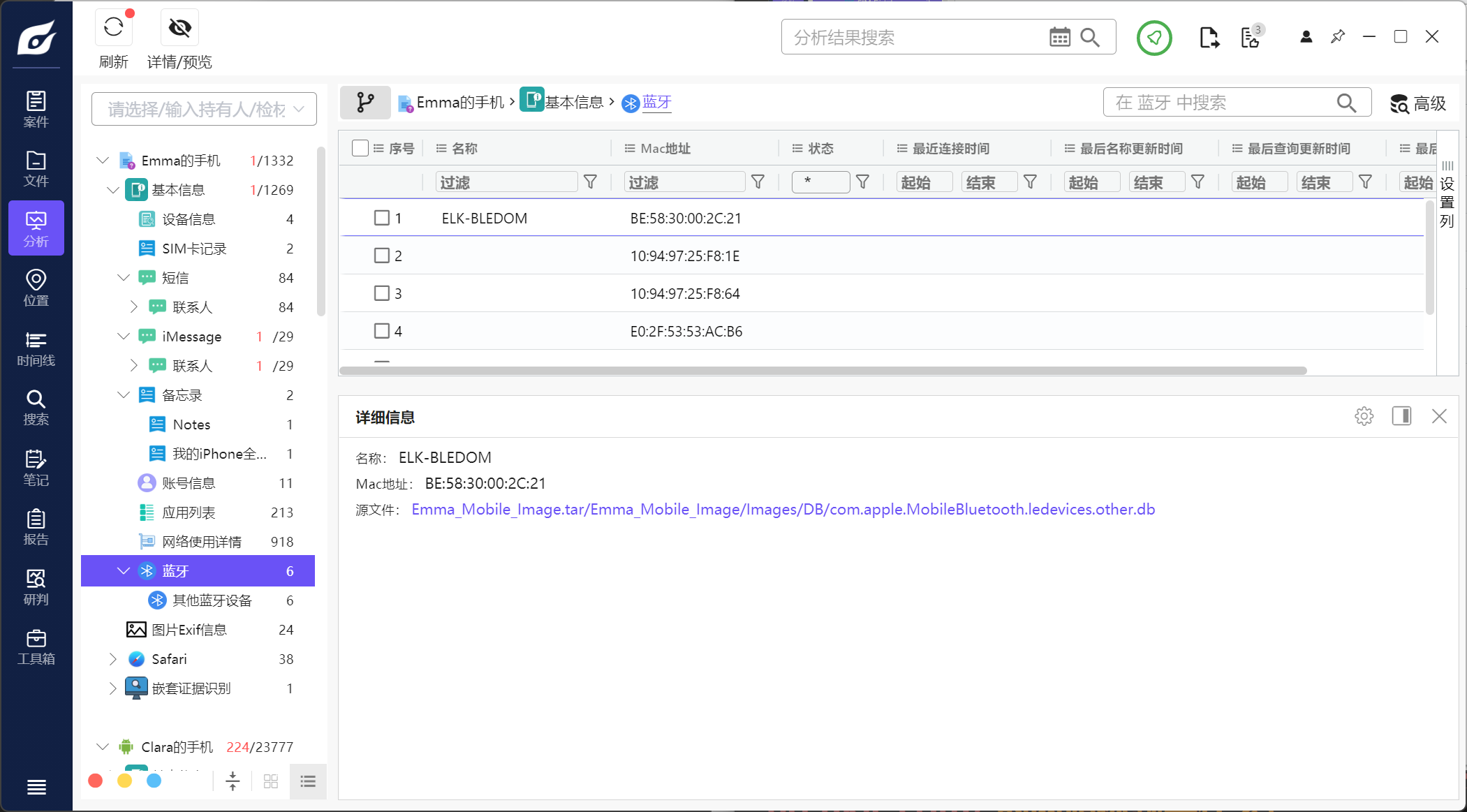 不过好在火眼能对其中的数据库什么的进行解析,虽然没有自动取证,但是也能看见具体的东西