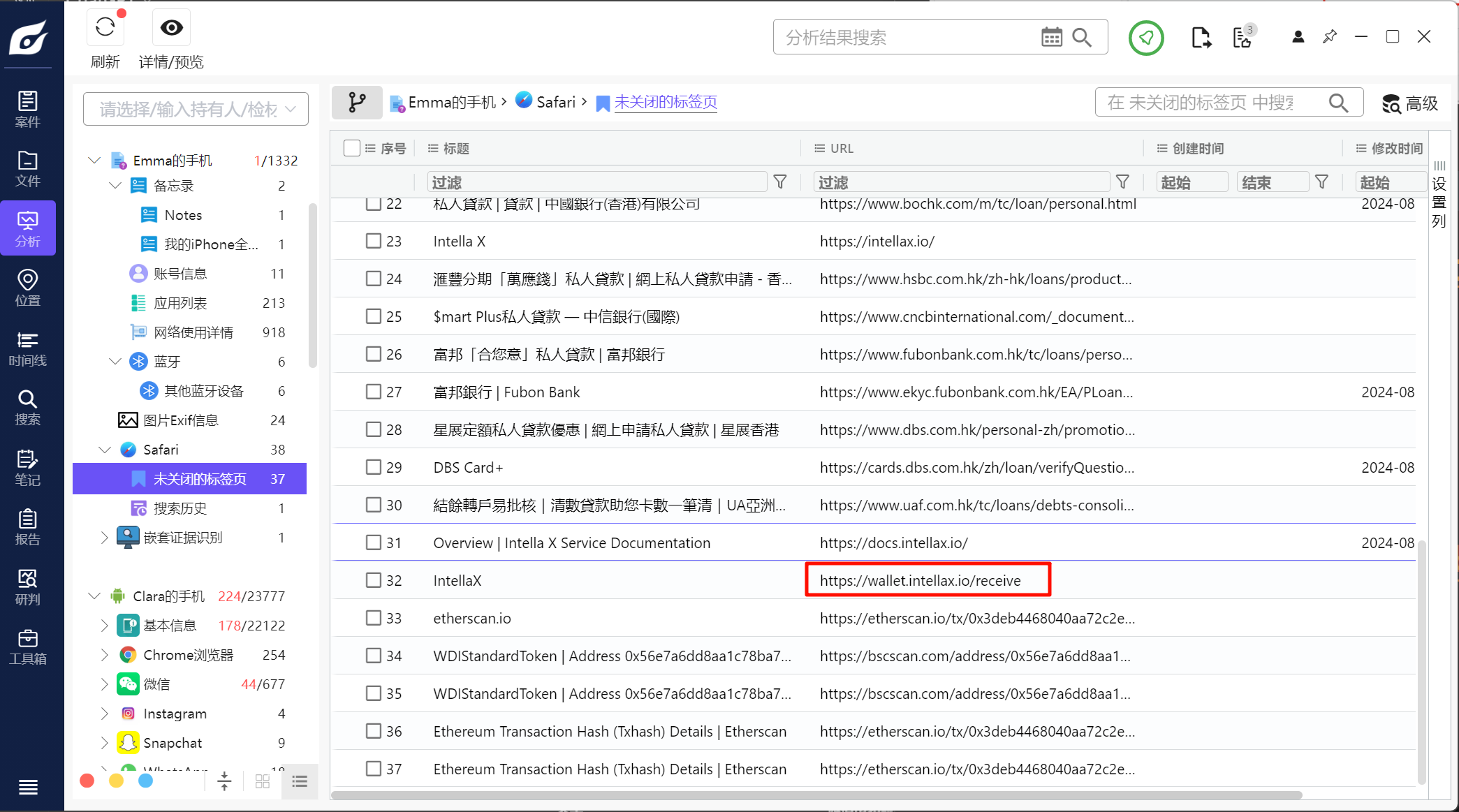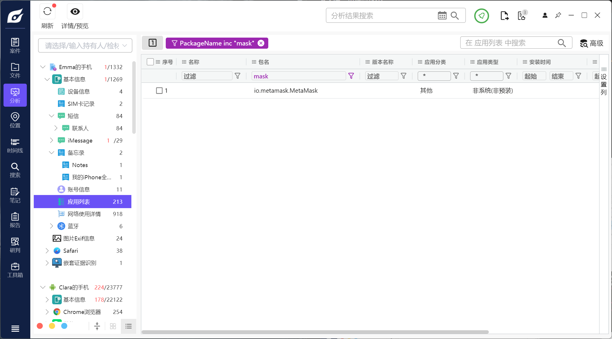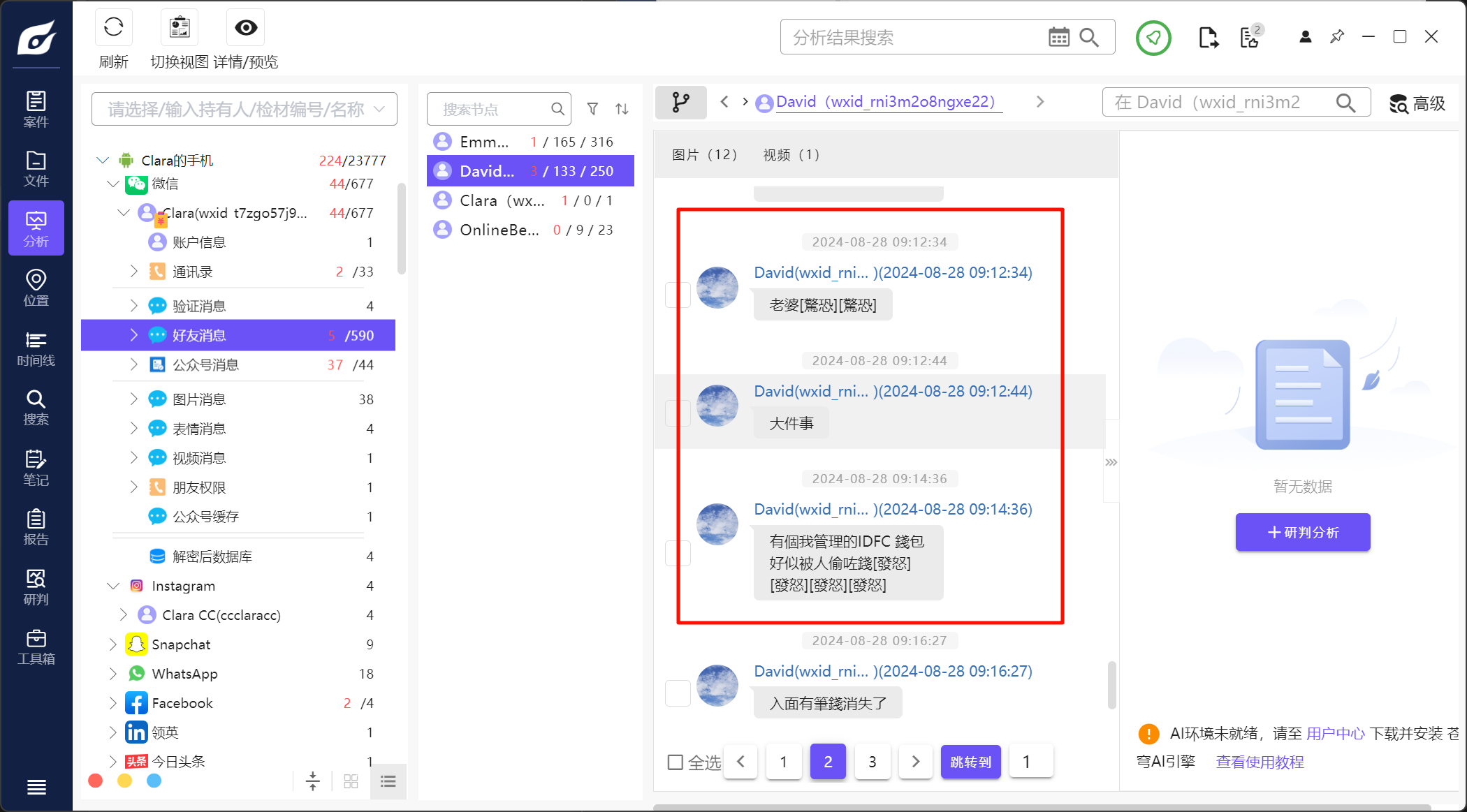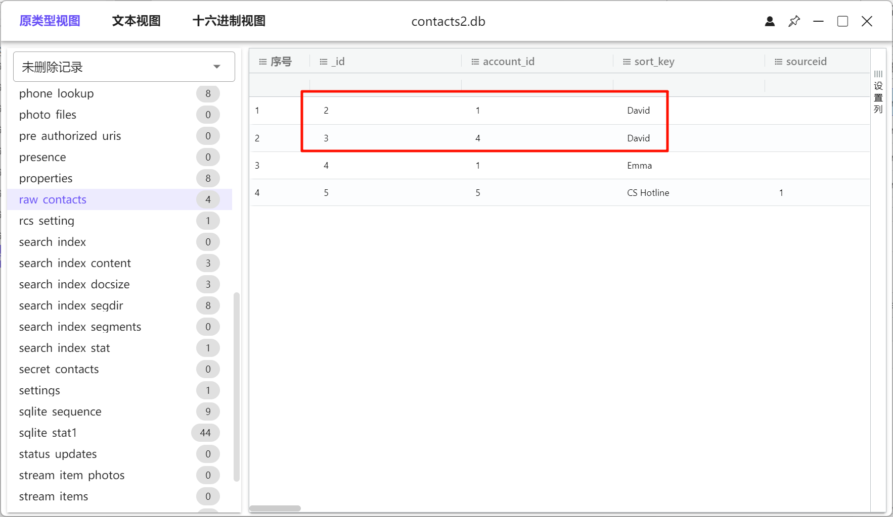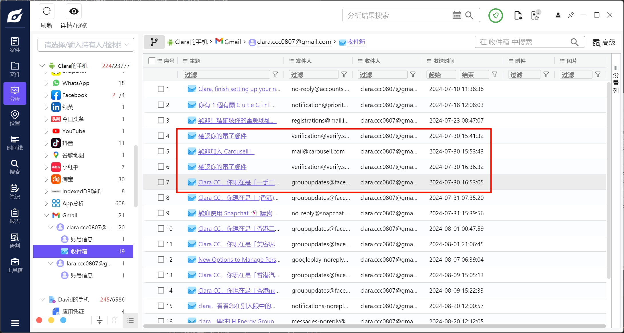 不过好在火眼能对其中的数据库什么的进行解析,虽然没有自动取证,但是也能看见具体的东西