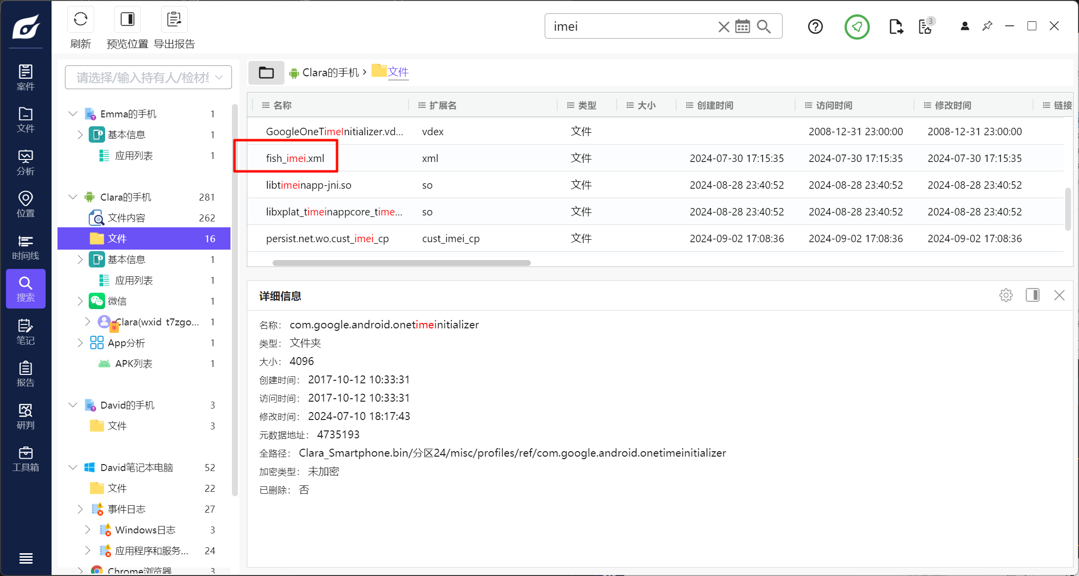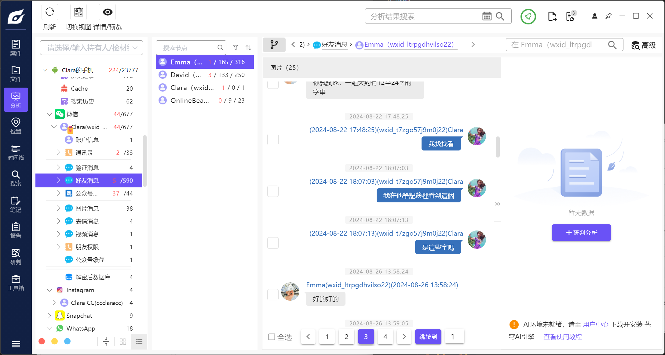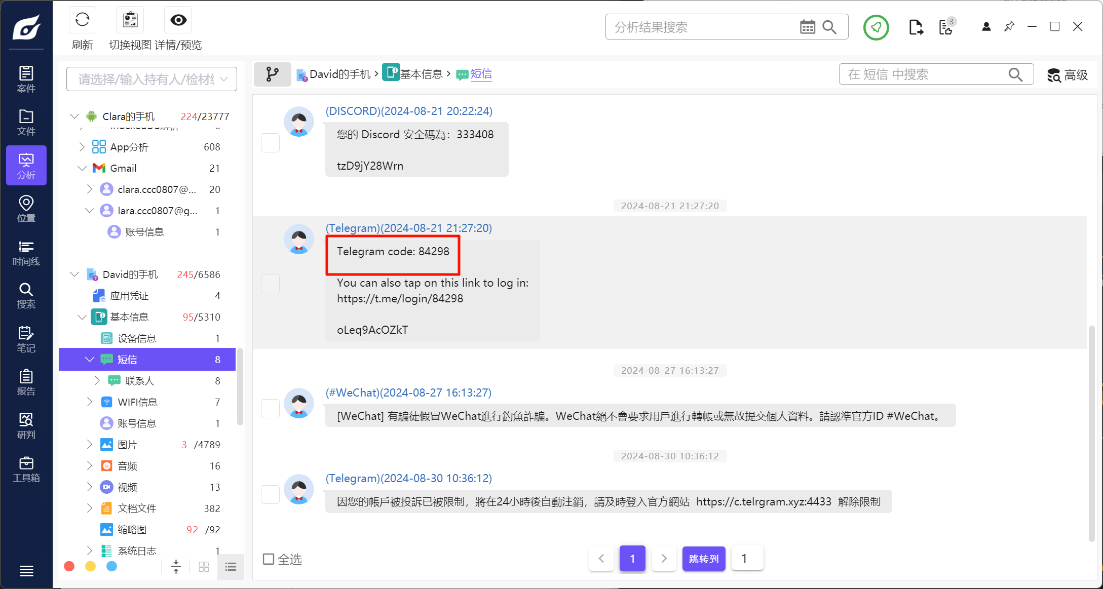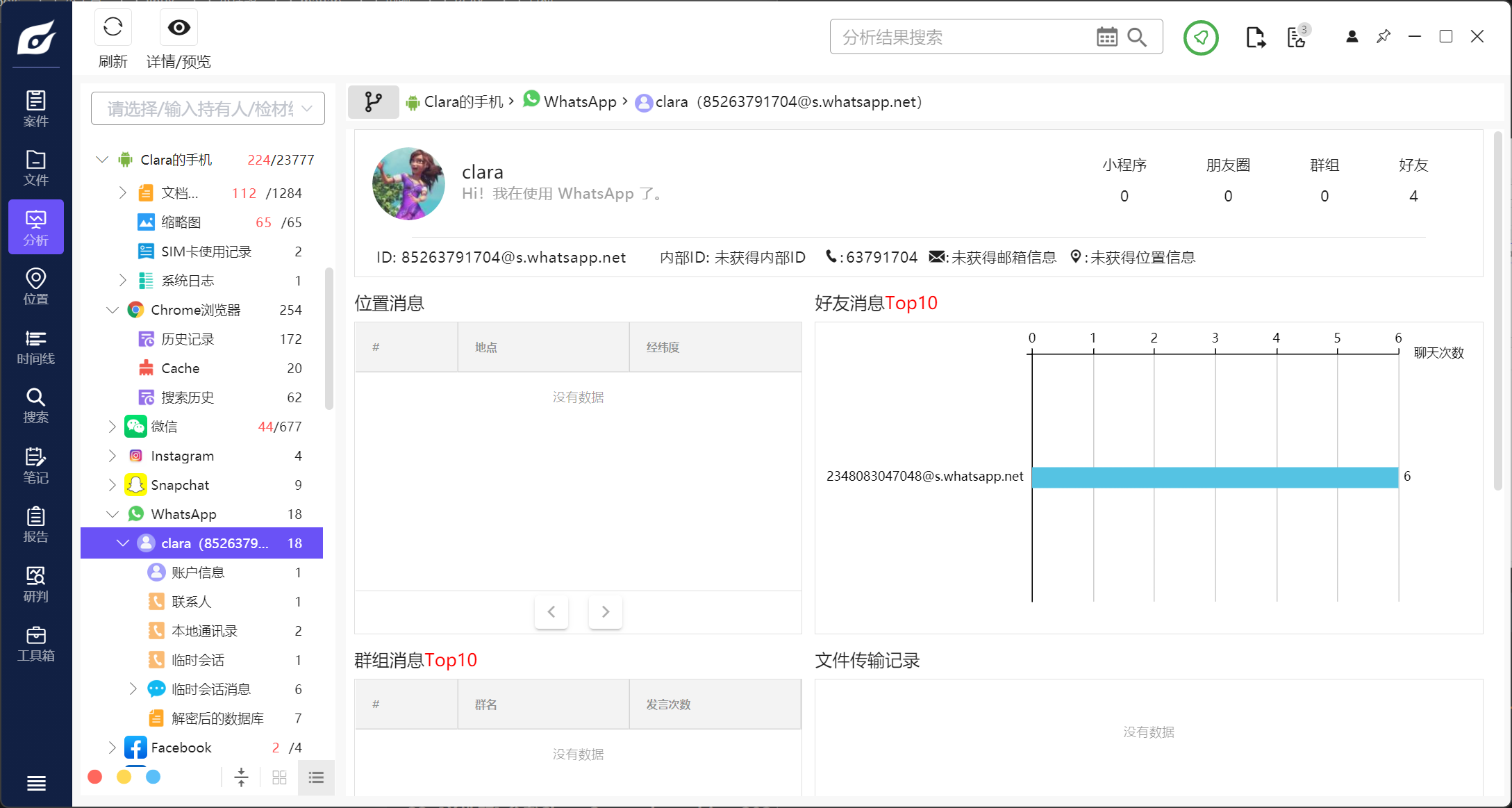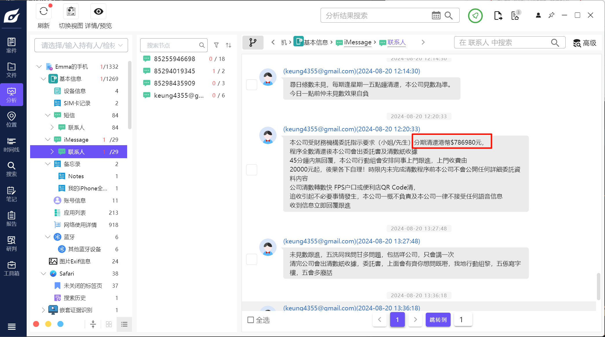 不过好在火眼能对其中的数据库什么的进行解析,虽然没有自动取证,但是也能看见具体的东西