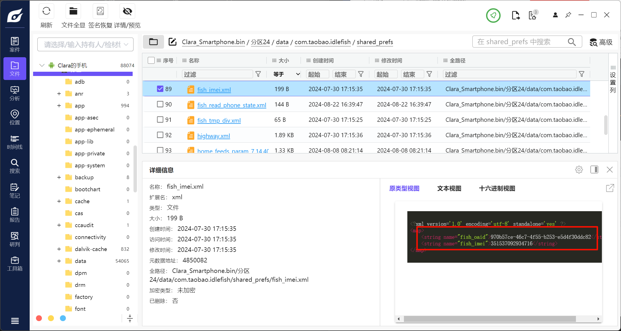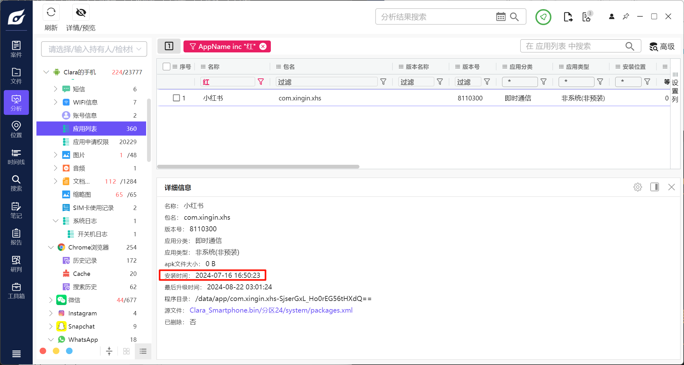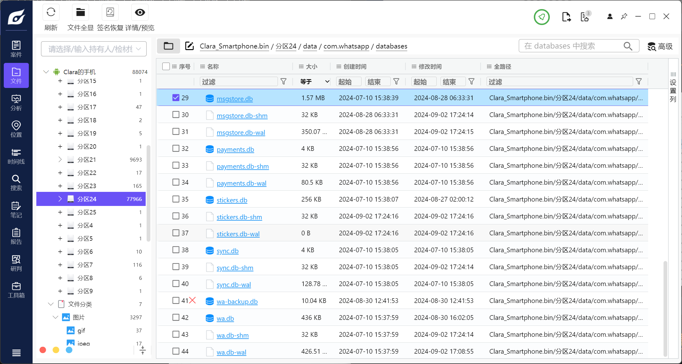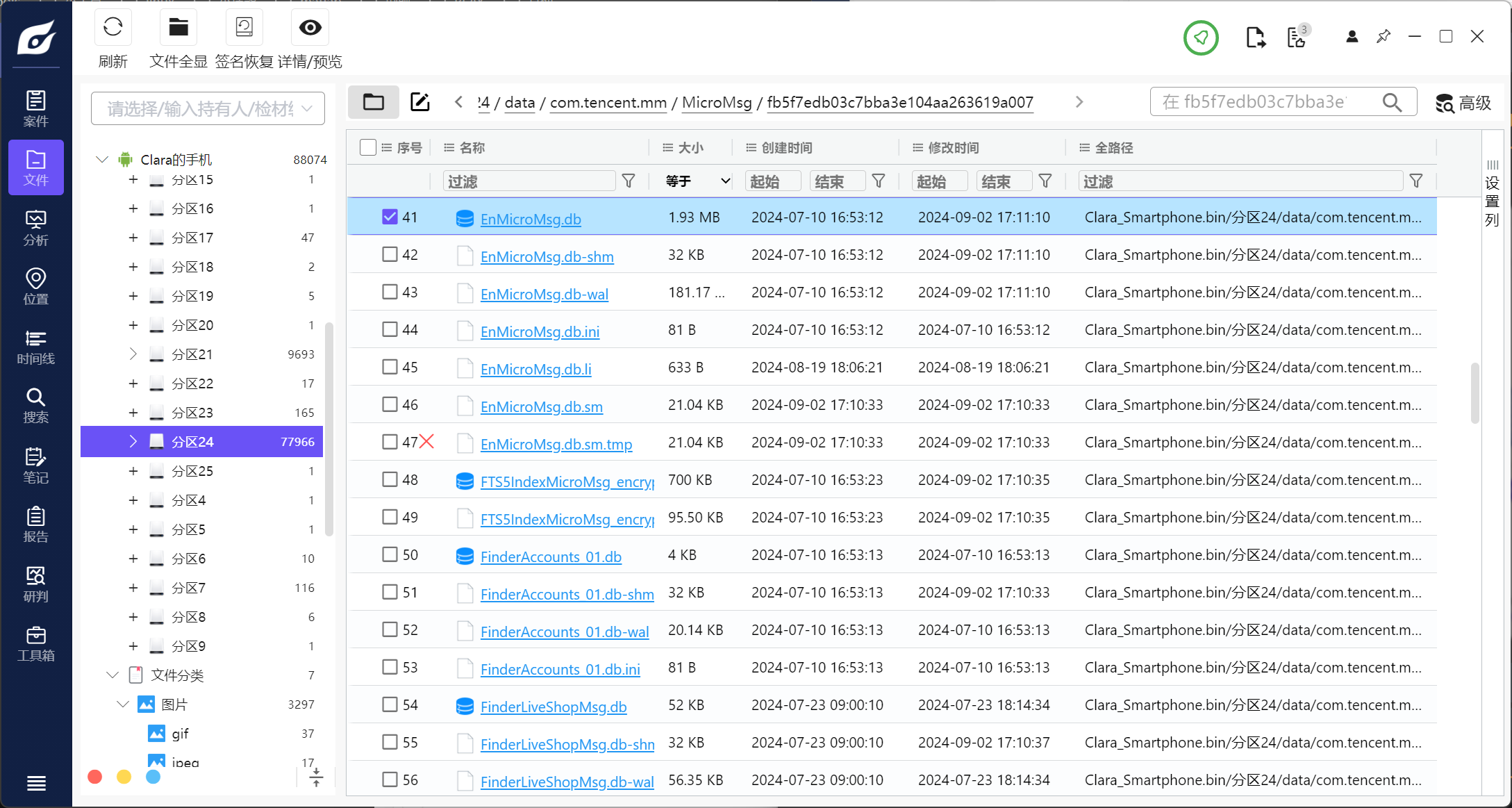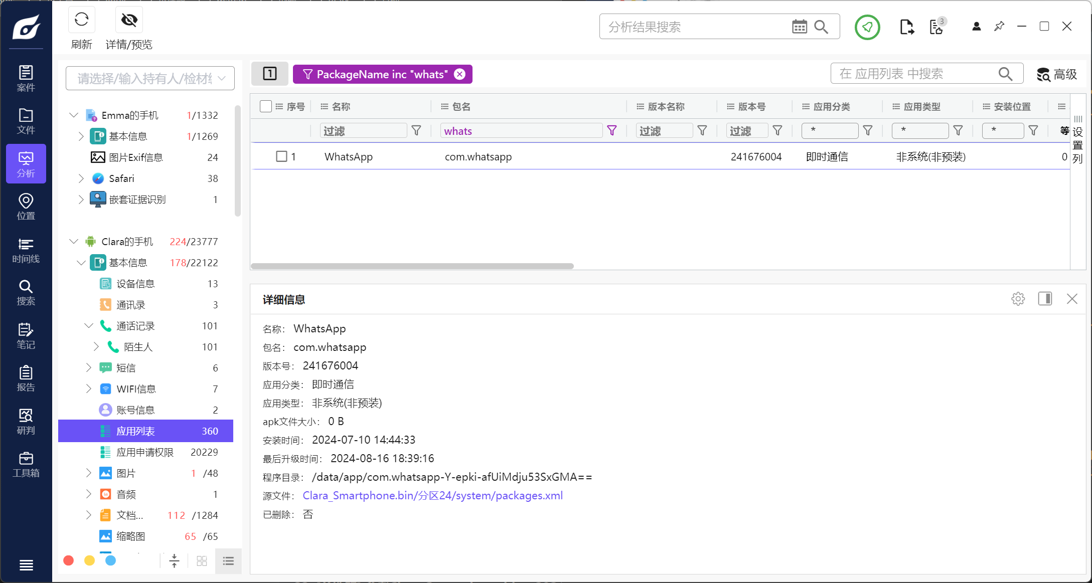 不过好在火眼能对其中的数据库什么的进行解析,虽然没有自动取证,但是也能看见具体的东西