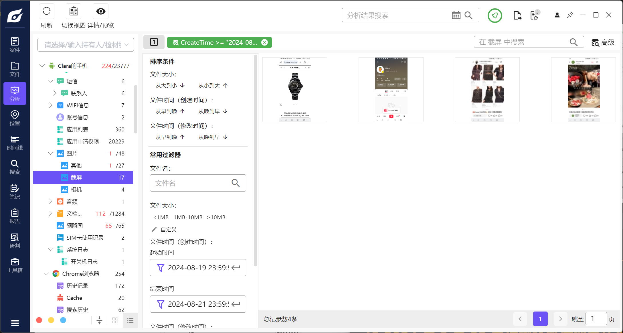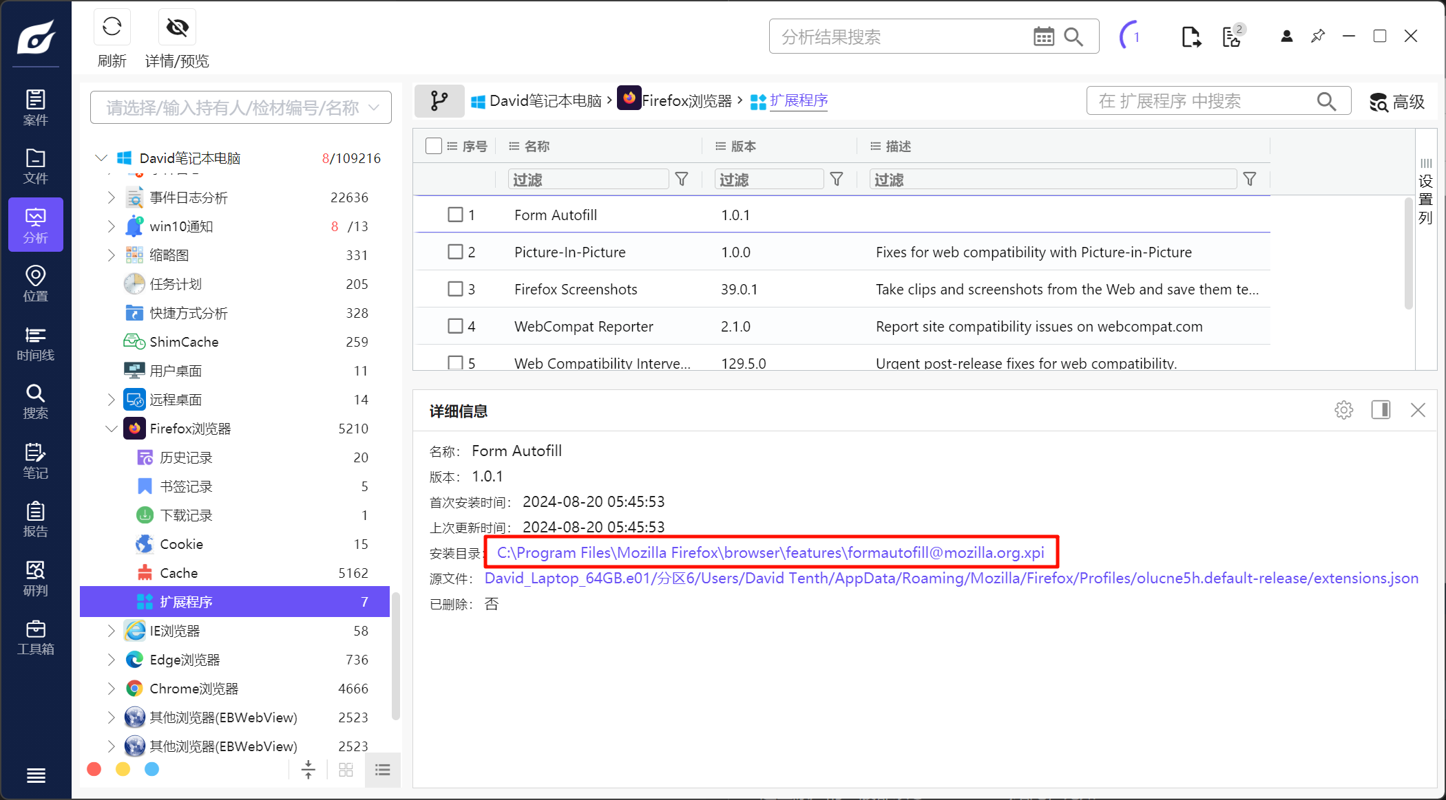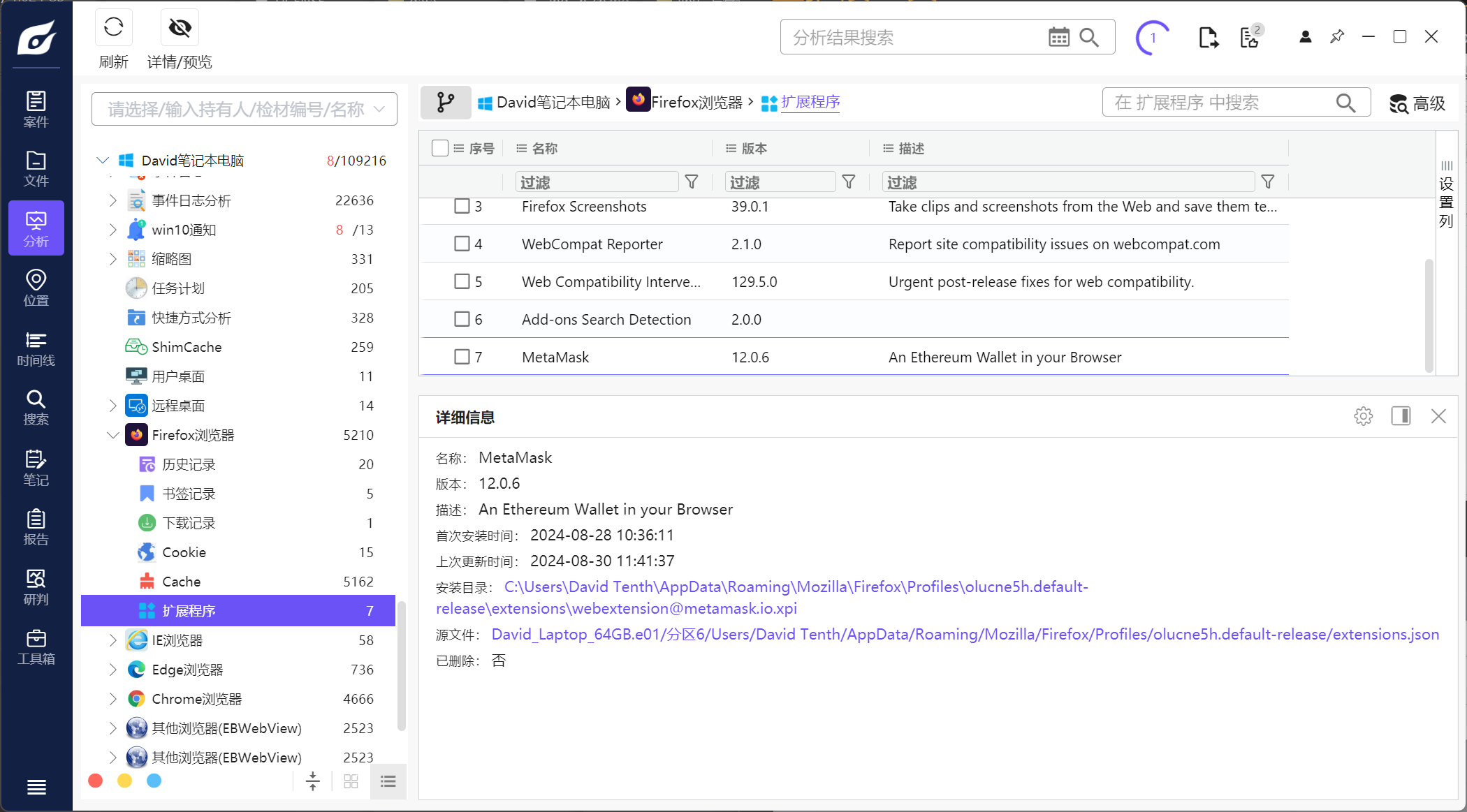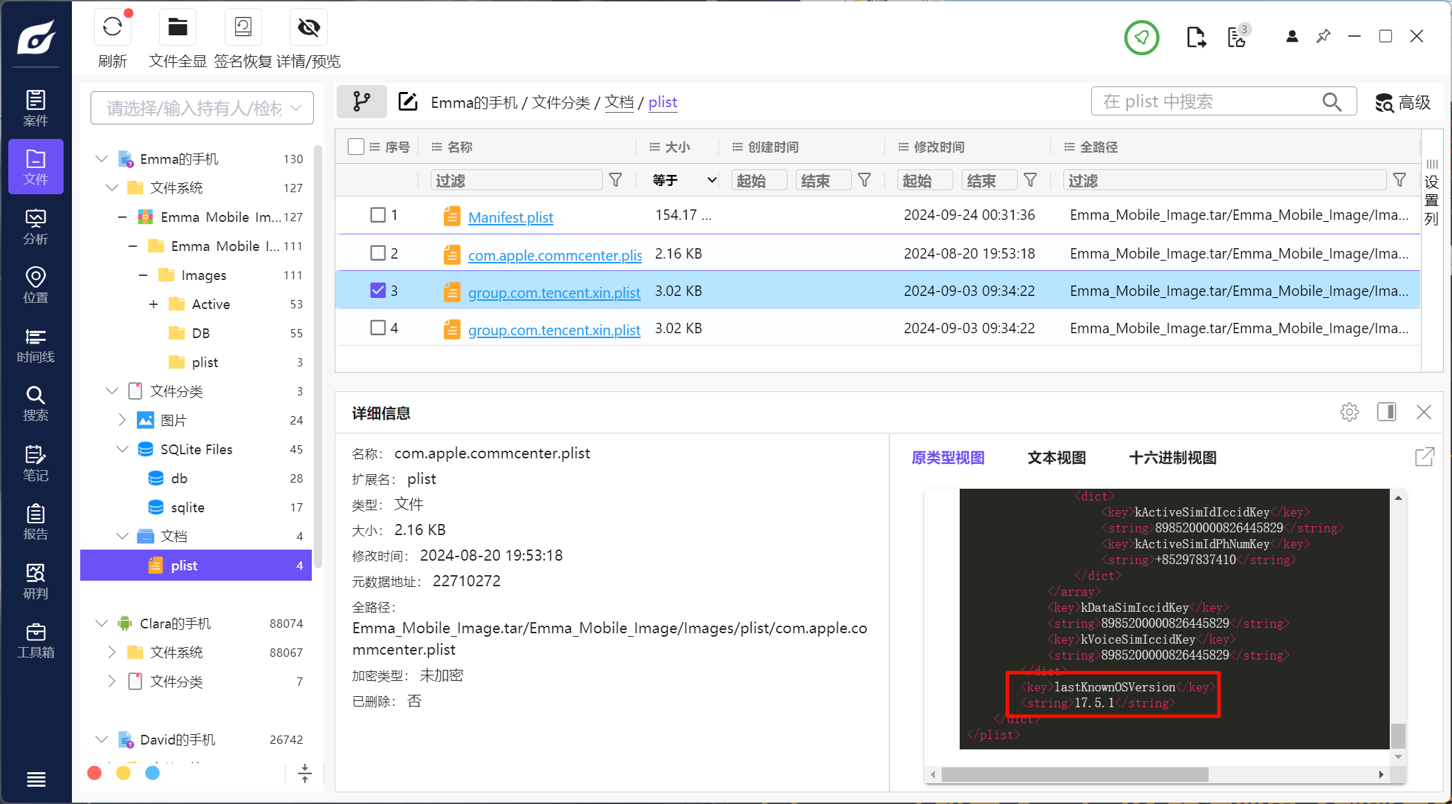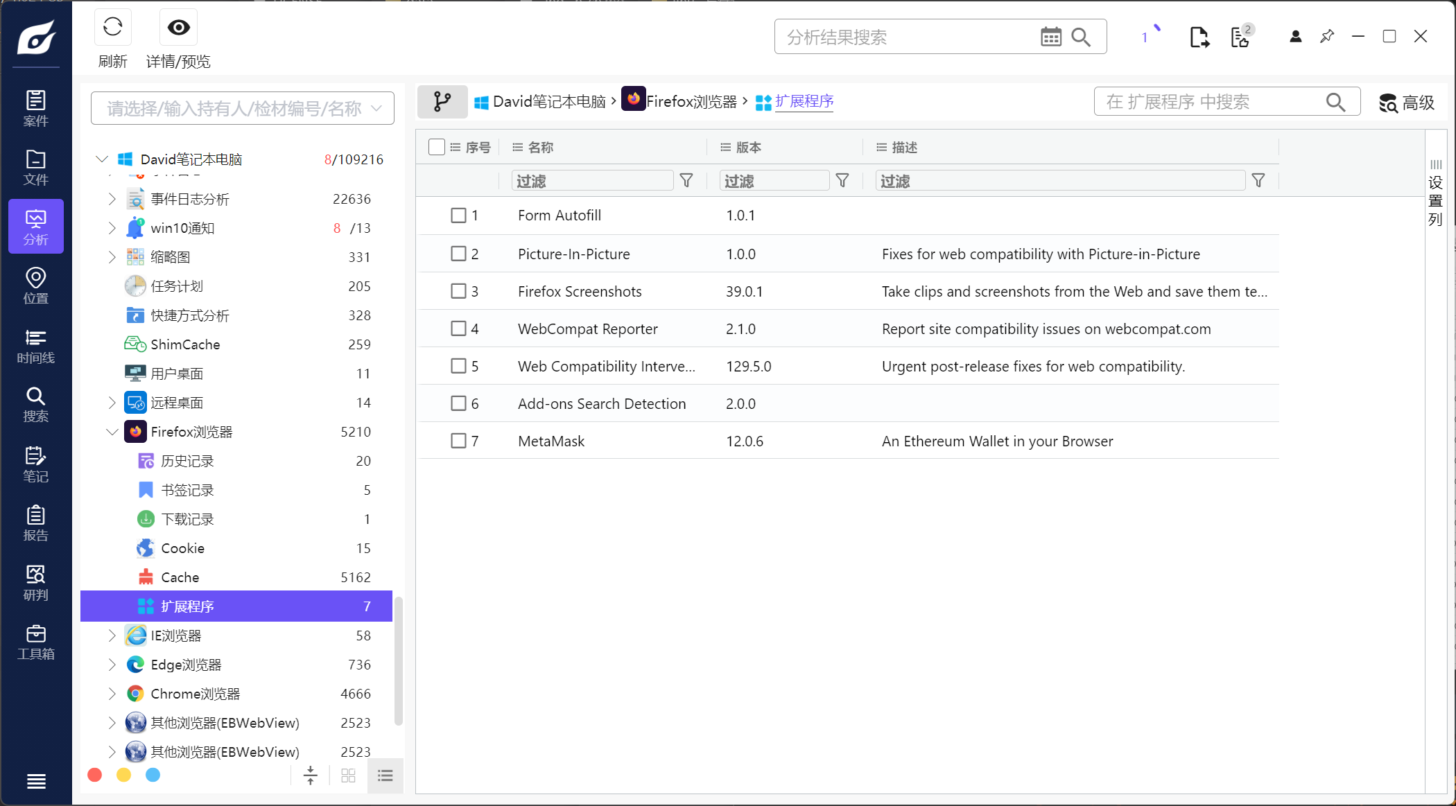 不过好在火眼能对其中的数据库什么的进行解析,虽然没有自动取证,但是也能看见具体的东西