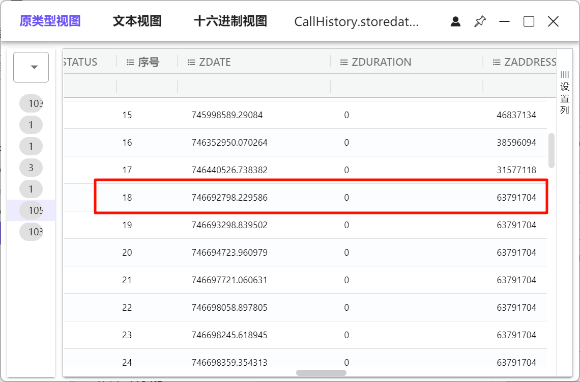 在数据库CallHistory的ZCALLRECORD表找到通话记录: