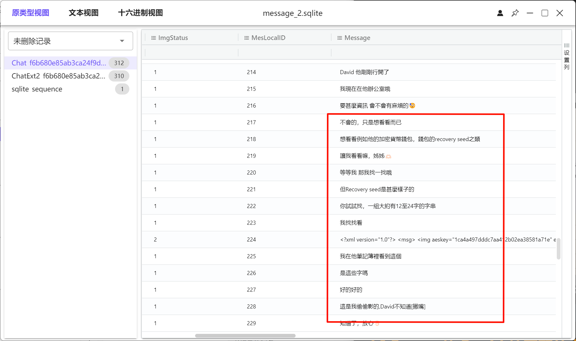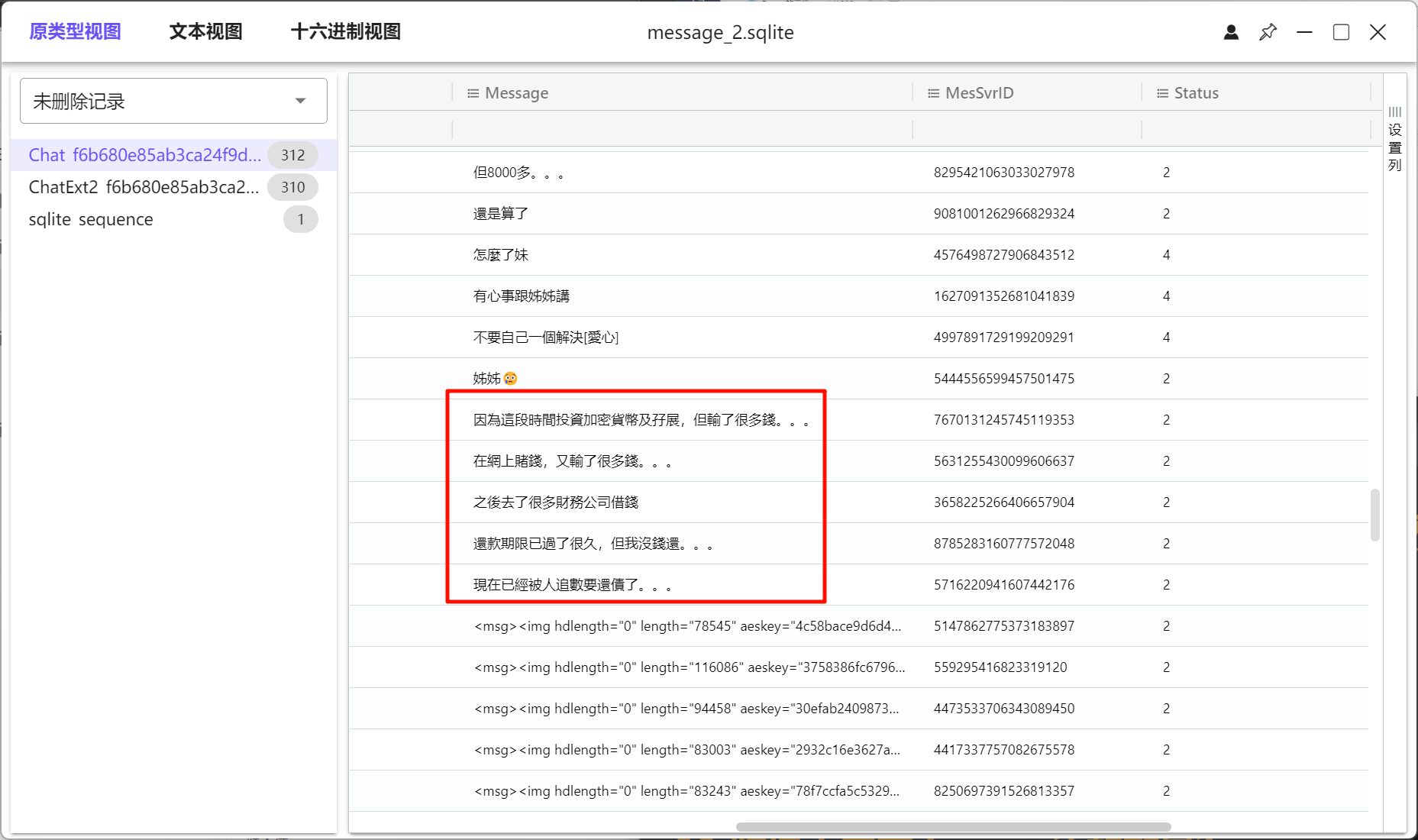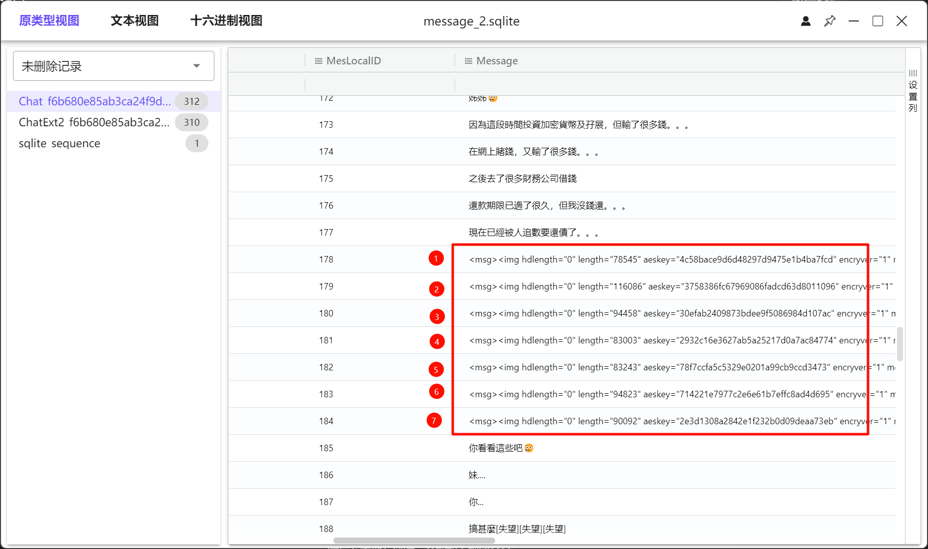 找到了,并且对应数据库message_2里面就是存有聊天记录的: