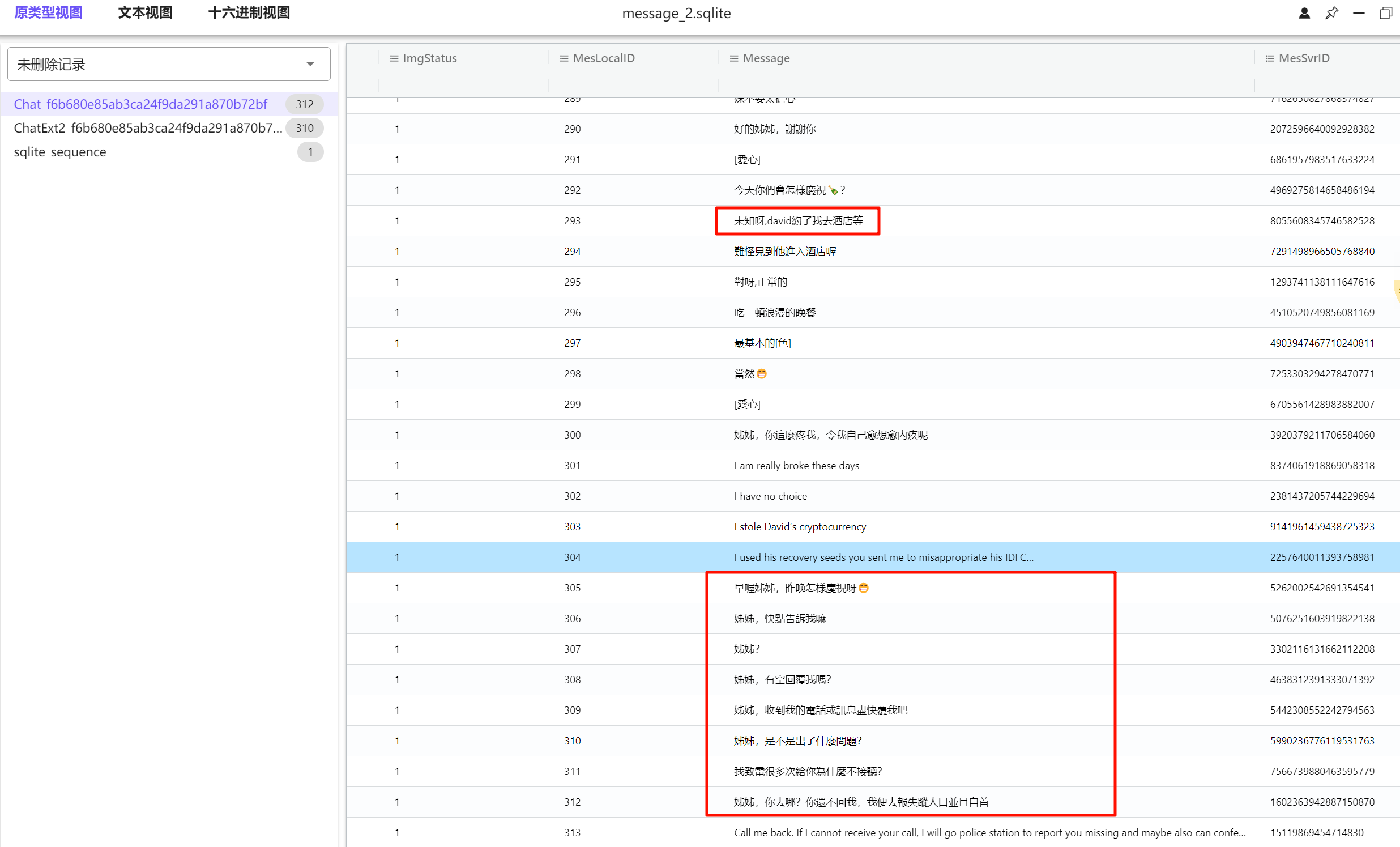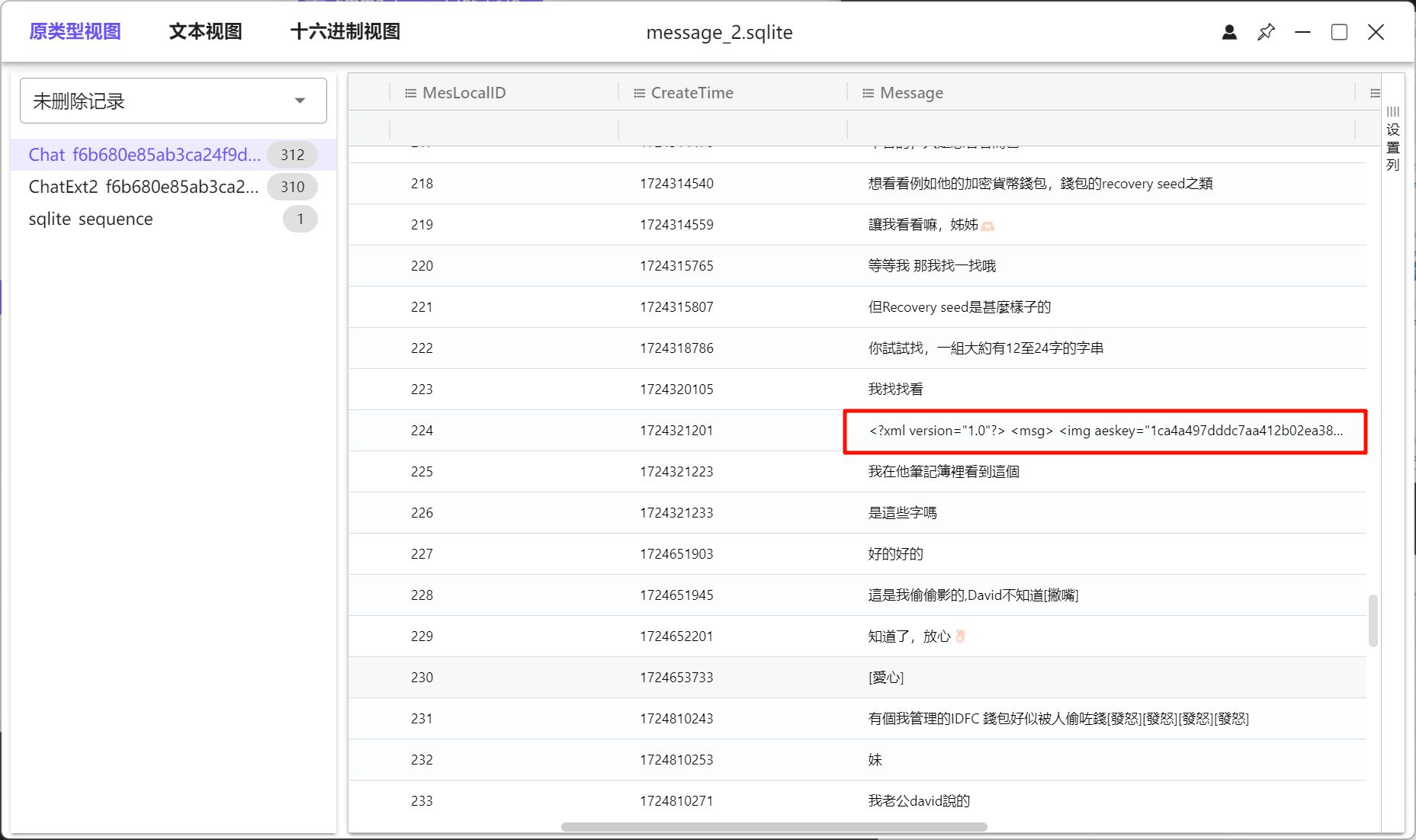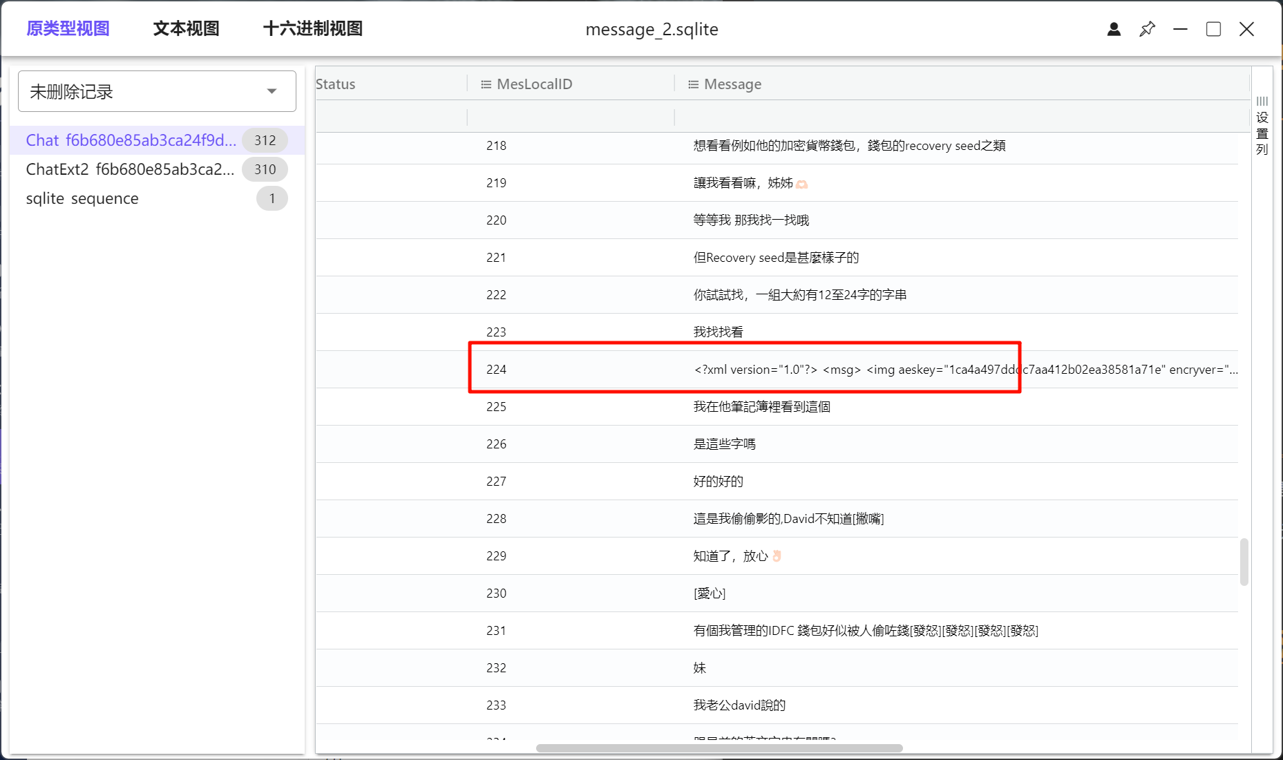 找到了,并且对应数据库message_2里面就是存有聊天记录的: