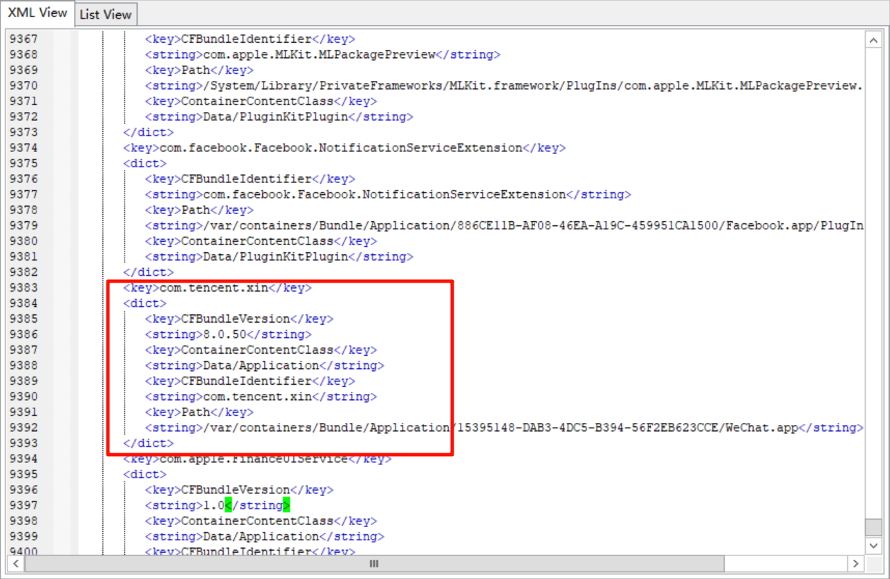 首先可以在group.com.tencent.xin.plist这个文件中找到微信id: