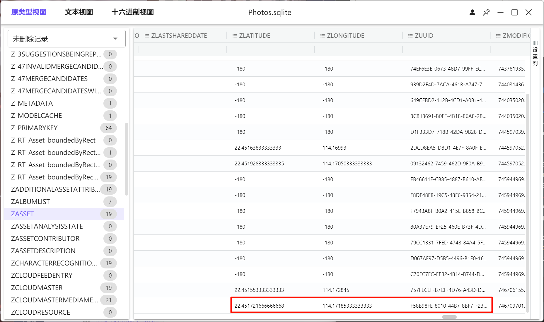 这个东西在Photo.sqlite见了很多次了,直接就能找到对应的: