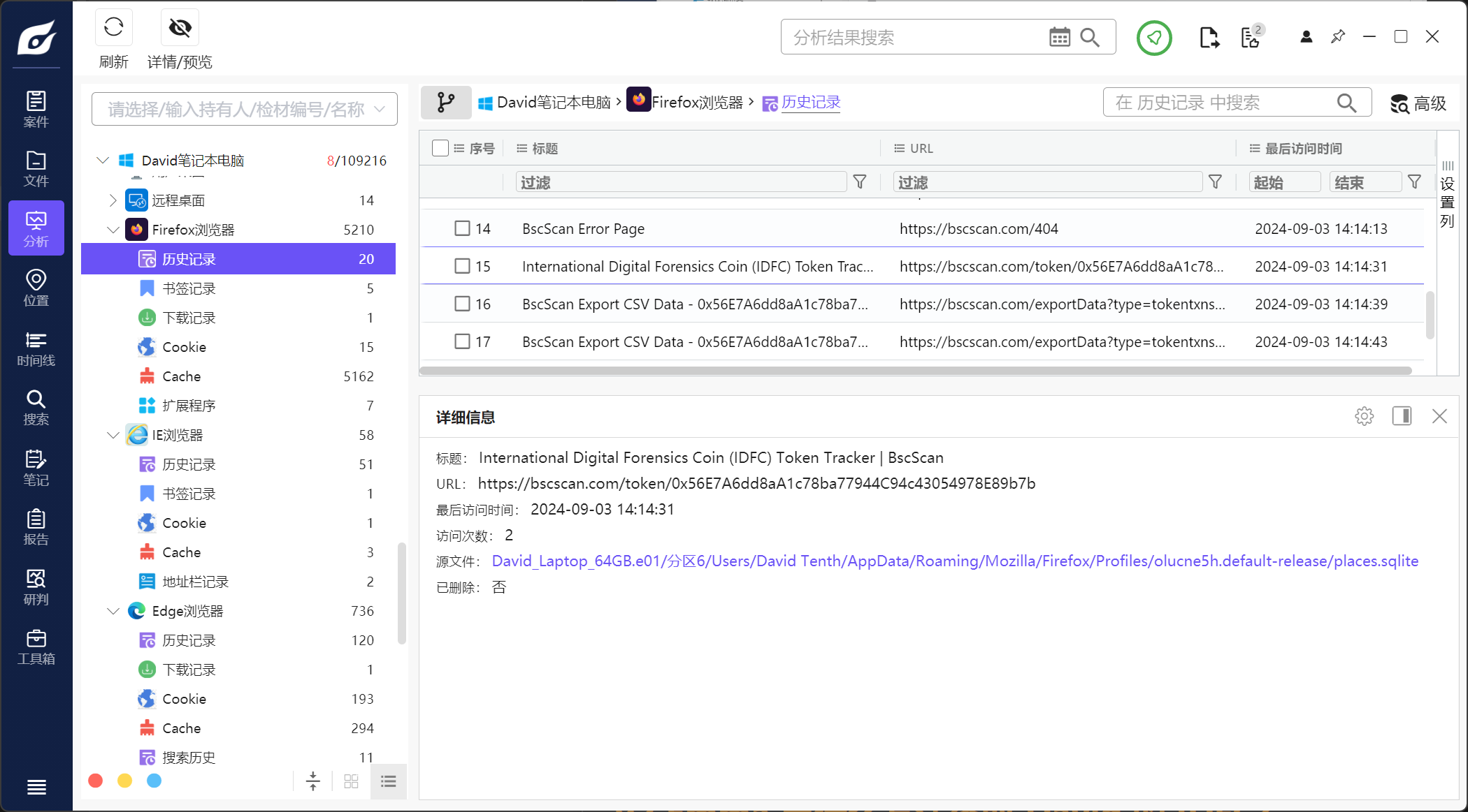 通过对 David 笔记本电脑的电子数据取证和痕迹分析, 你了解到 David 是一名加密货币专家.