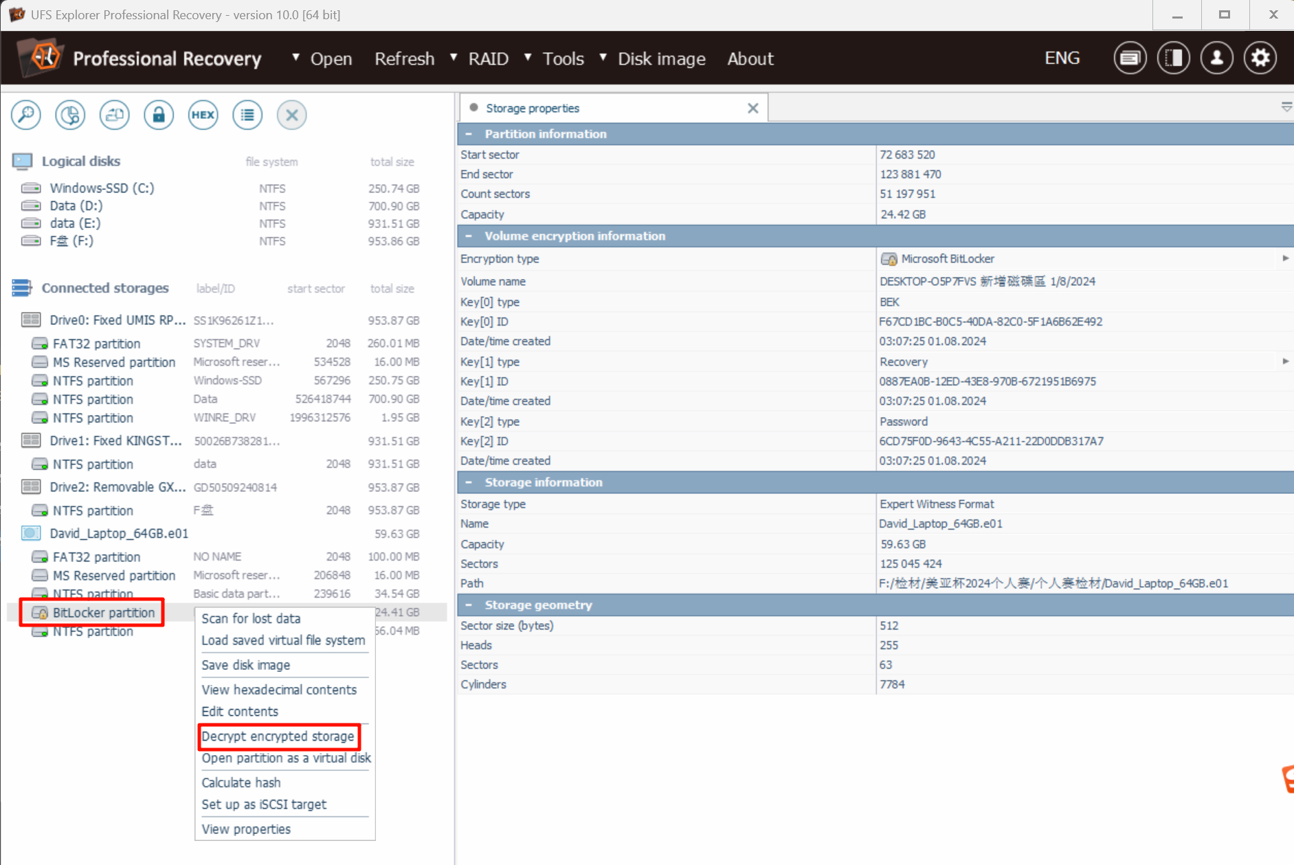 首先把包含加密分区的镜像导入UFS,右键加密分区,选择解密: