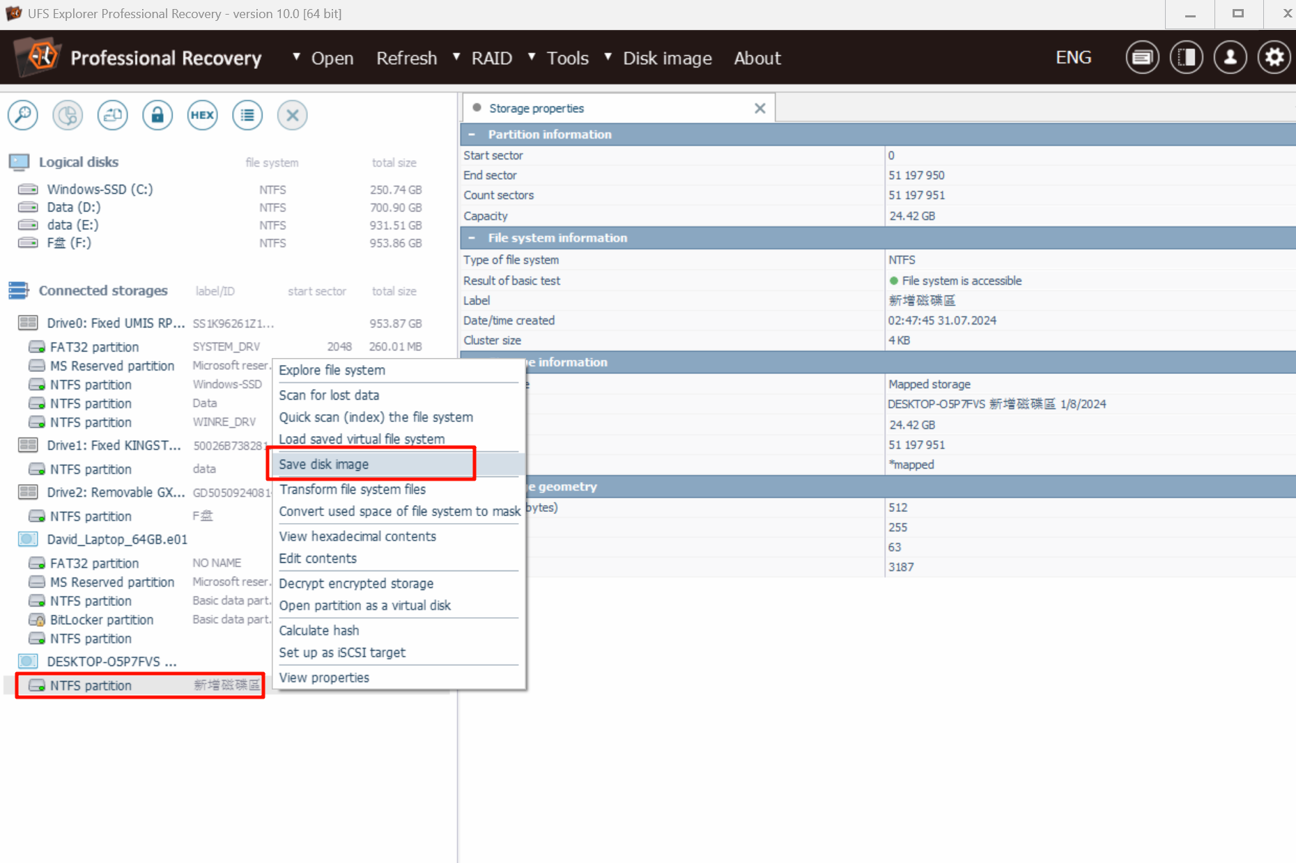 解密成功之后,会得到一个新的磁盘,右键另存: