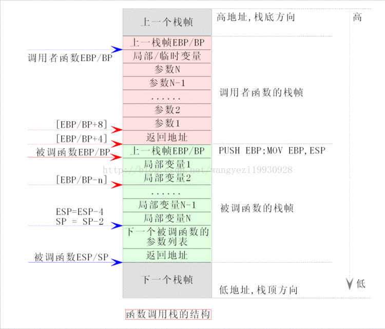 下图关于参数划分的栈帧位置有些不同,不过也能辅助理解嵌套调用: