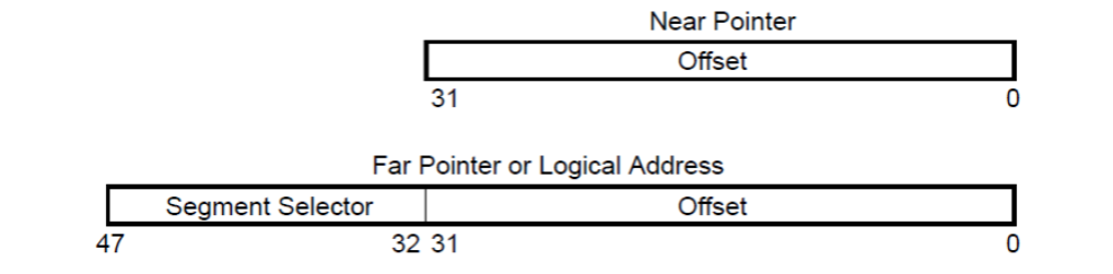一个逻辑地址由段选择器段内偏移两部分组成: