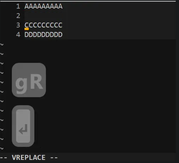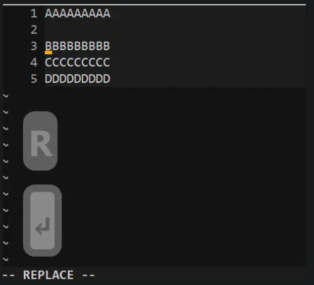• r – 输入单个字符,把高亮文本所有字符逐个替换为该字符